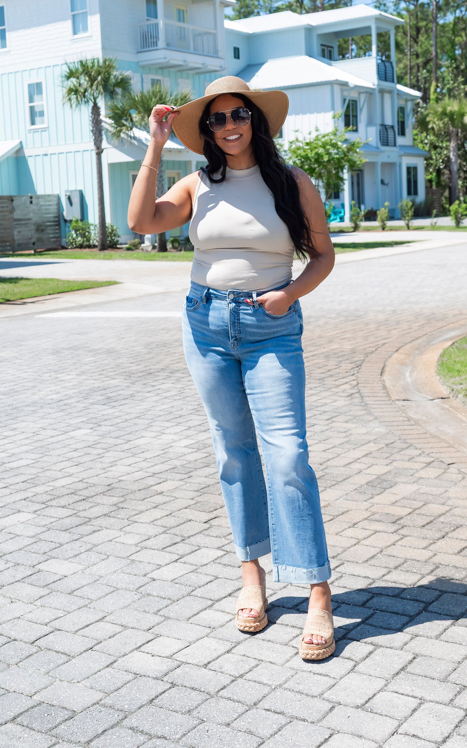 High Rise Straight Leg w/ Cuffed Hem Denim Jean | MICA -FINAL SALE