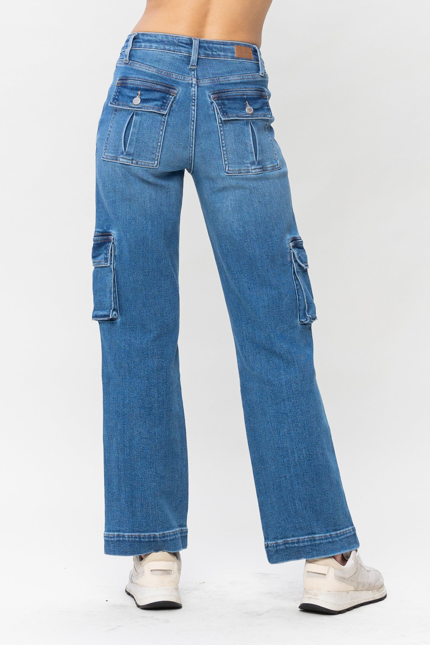 High Waist Cargo Denim Wide Leg Jeans - Judy Blue - Final Sale