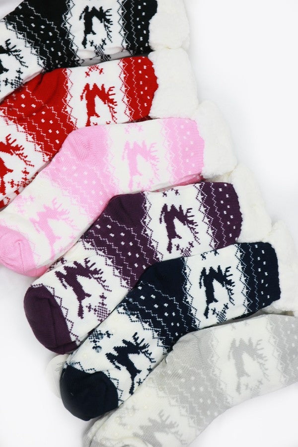 Keep your feet warm and snug even on the chilliest days with Reindeer Fur Fuzzy Winter Socks! Crafted from ultra-soft fur, these winter wonders will keep your toes toasty and make a fun fashion statement! (Hey, you may even have Rudolph's distant cousins jealous.).