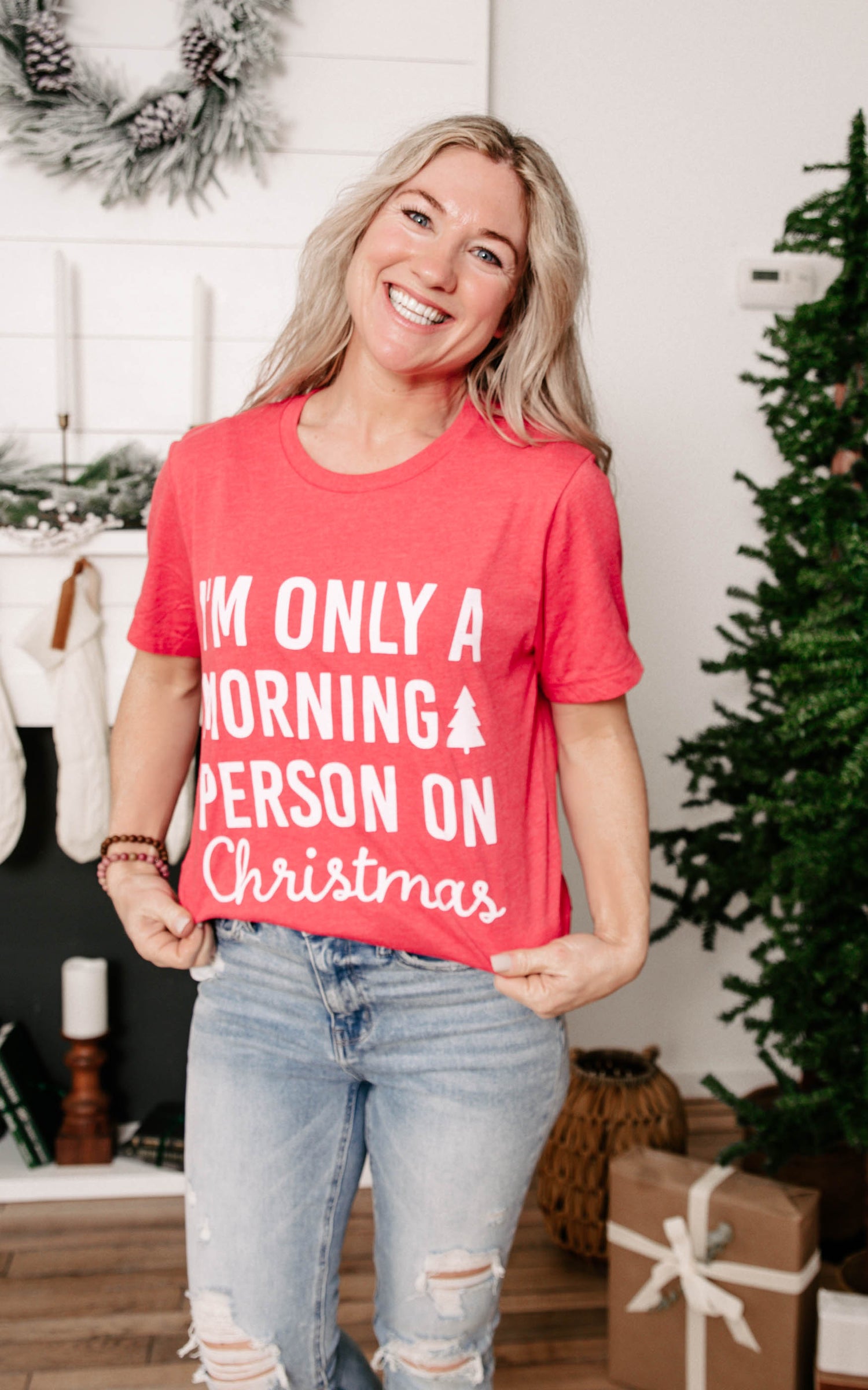 I'm Only a Morning Person on Christmas Morning T-shirt** - Final Sale