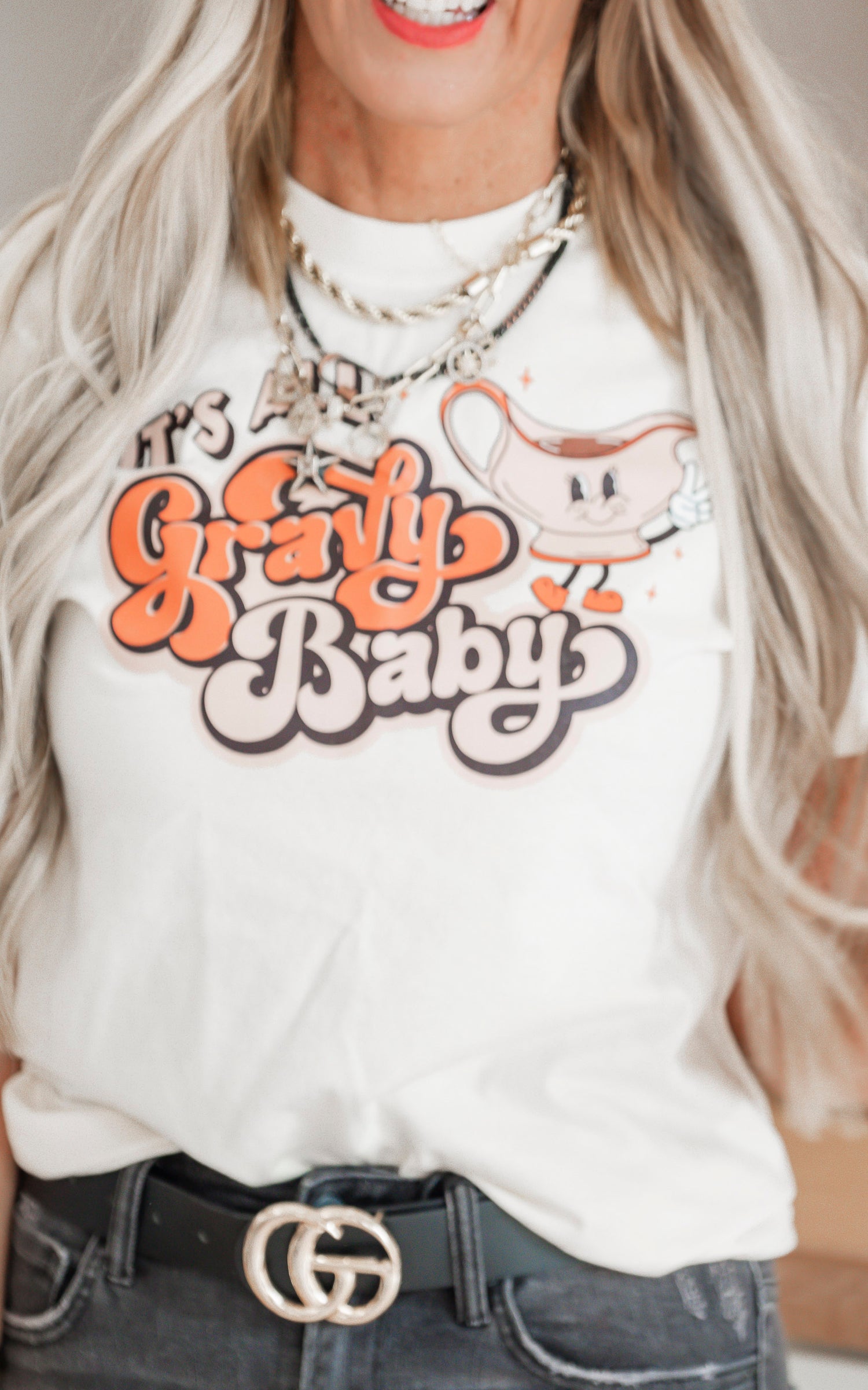 Get ready to spread some positivity with our "It's All Gravy Baby" T-shirt! Made with garment dyed fabric, this graphic tee is not only stylish but comfortable. Spread good vibes and show off your unique style with this must-have shirt.