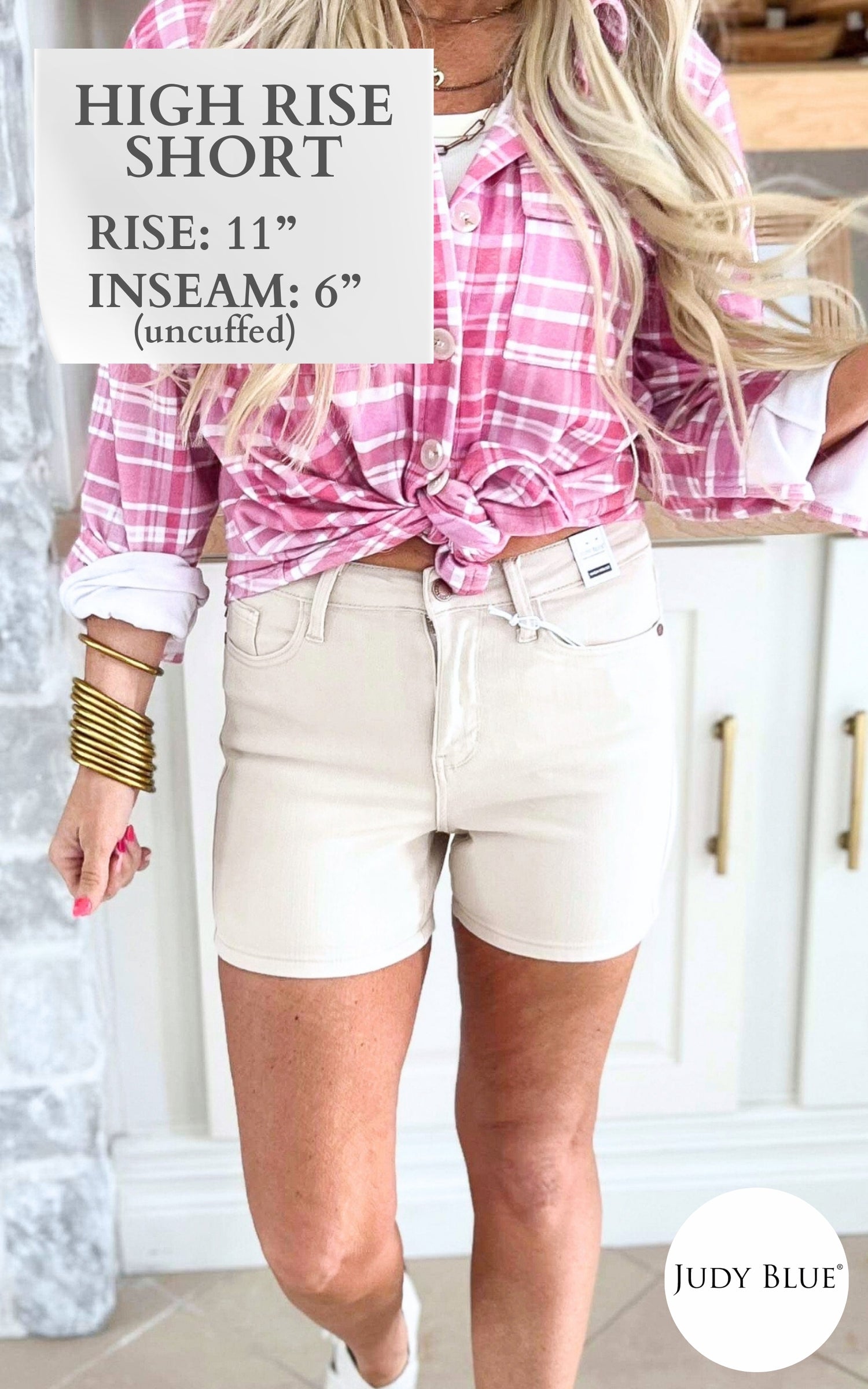 High Rise Bone Garment Dyed Denim Shorts (REG/CURVY) | Judy Blue - Final Sale