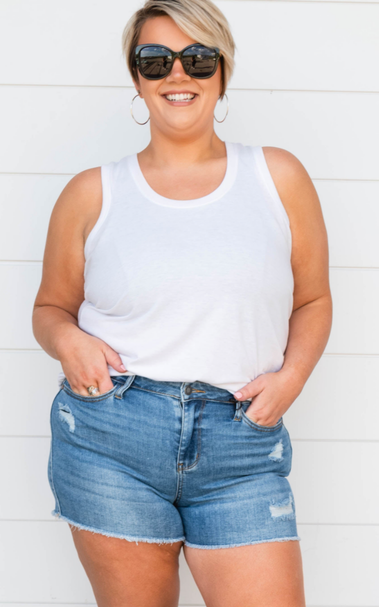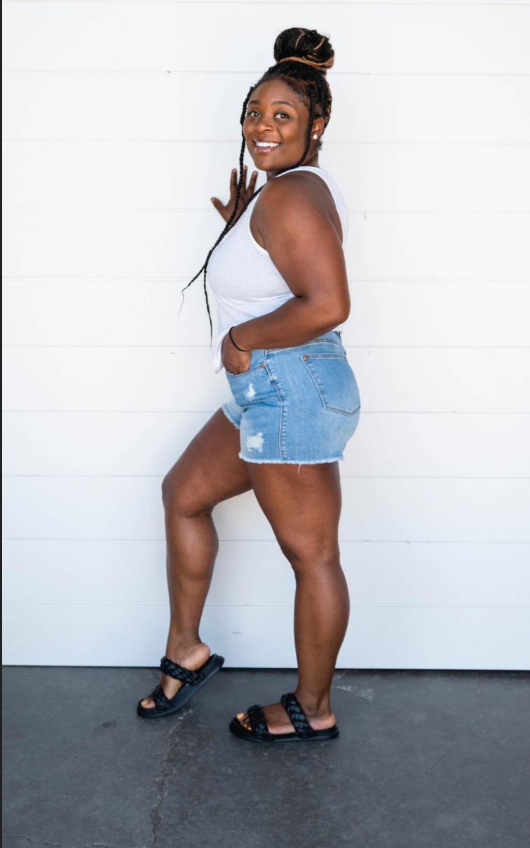 These shorts were created to give you that comfortable, relaxed cut and fit but still look put together. Composed of a slightly distressed denim and has a high waist. With stretch, this is an easy favorite that can be worn with anything from sandals to combat boots or even heels for a dressier look!