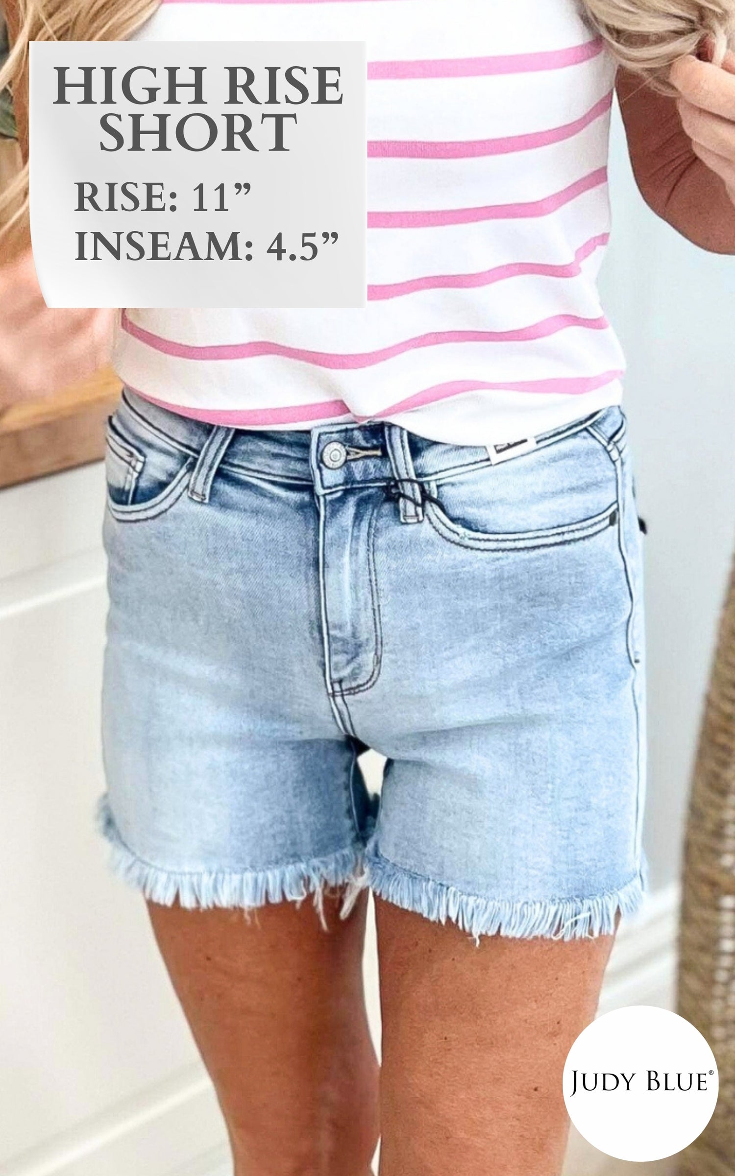 High Waist Fray Hem Cut Off Dad Denim Shorts (REG/CURVY) | Judy Blue - Final Sale