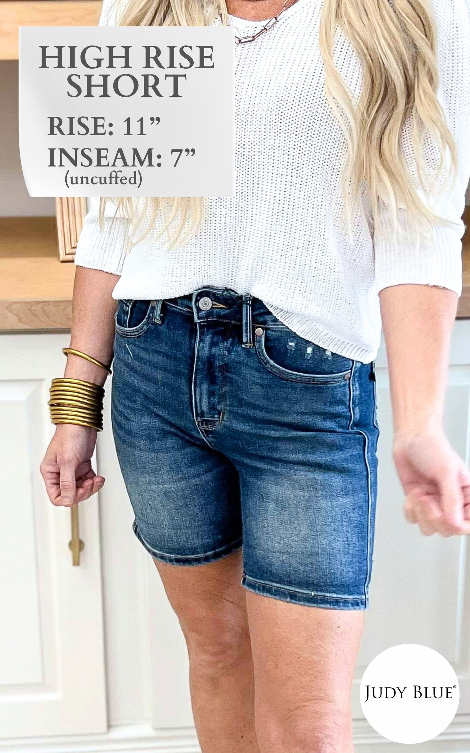 High Waist Tummy Control Vintage Wash Cuffed Denim Shorts (REG/CURVY) | Judy Blue - Final Sale