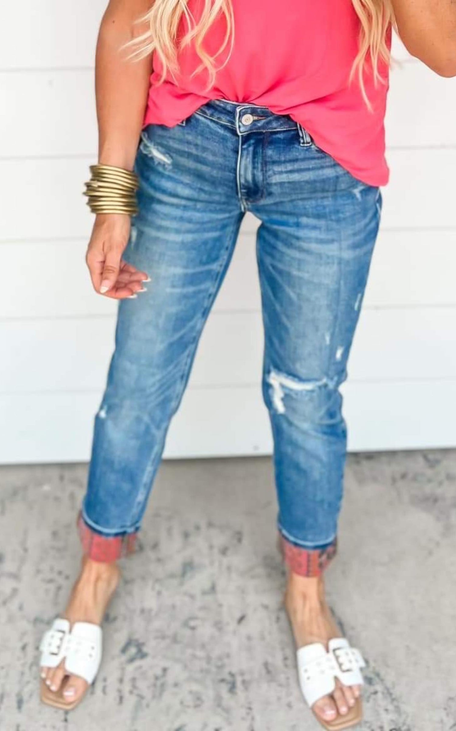 Are you ready to shake up your wardrobe? Judy Blue's Paisley Patch Print Cuff Boyfriend jeans will do the trick! A cool patchwork print, contrast stitching details, and stylish cuffs make these jeans perfect for a fun night out! Make a bold statement - without saying a word.