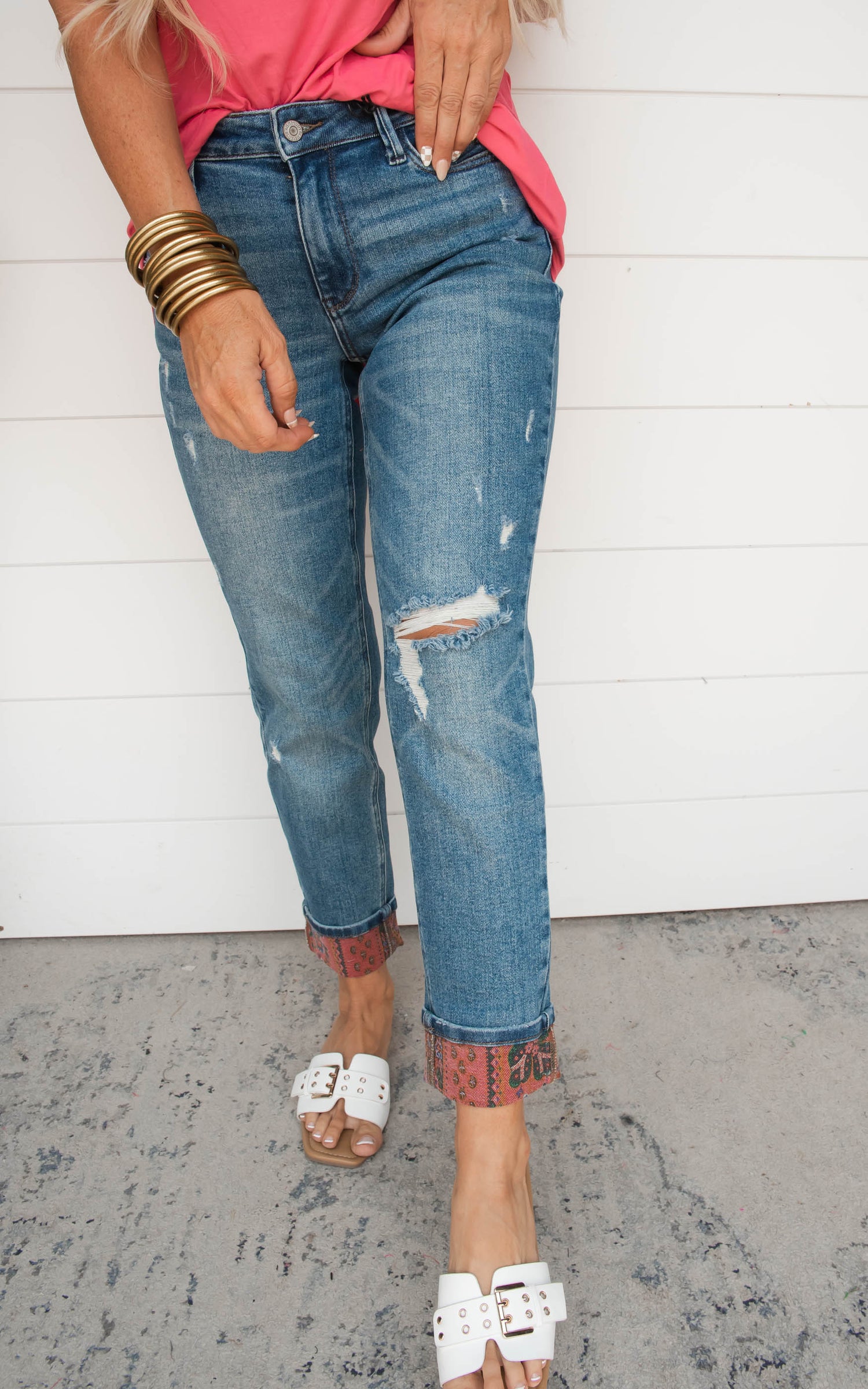 Judy Blue Paisley Patch Print Cuff Boyfriend - Final Sale