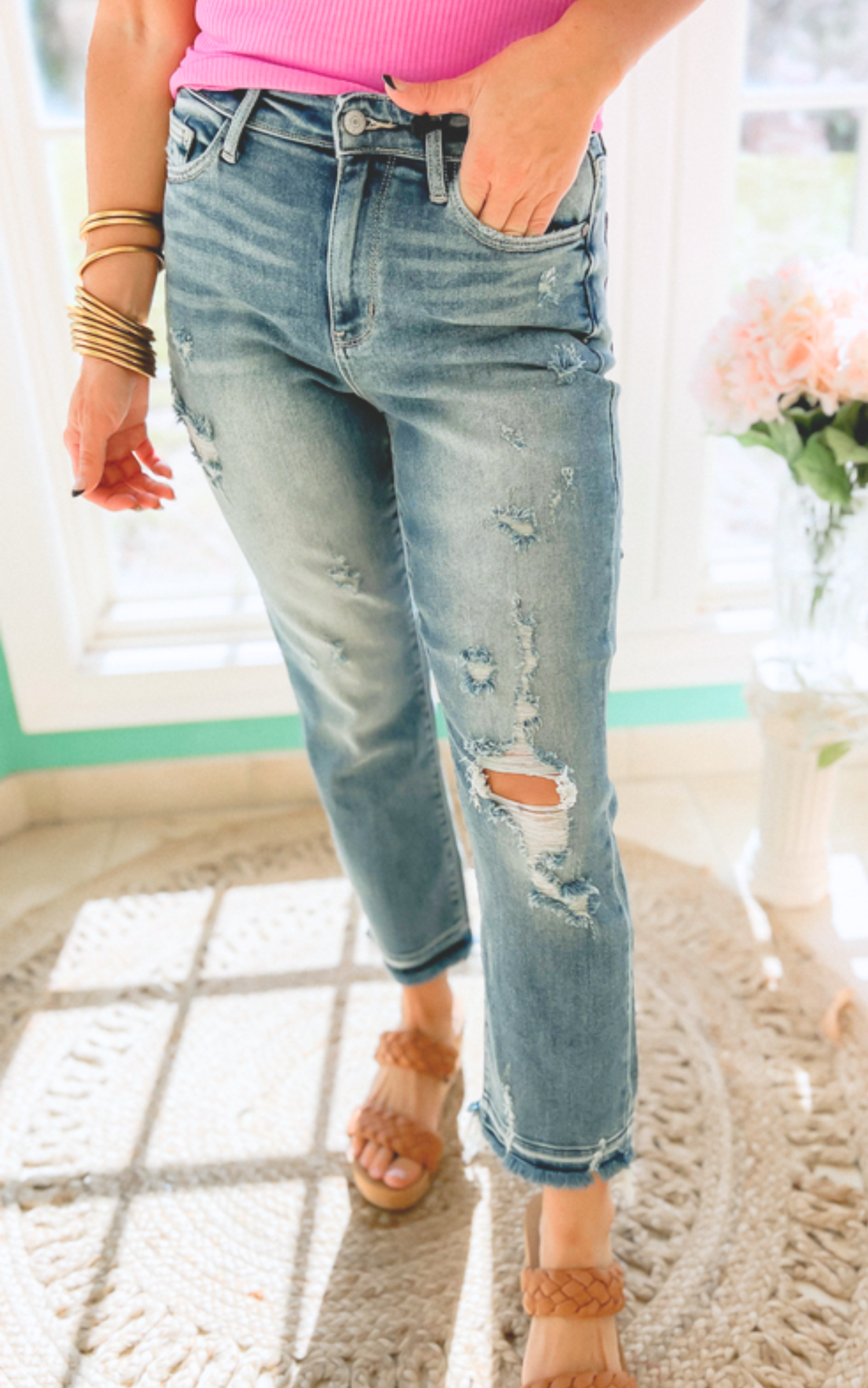 Judy Blue Release Hem Boyfriend Cropped Straight Denim Jeans