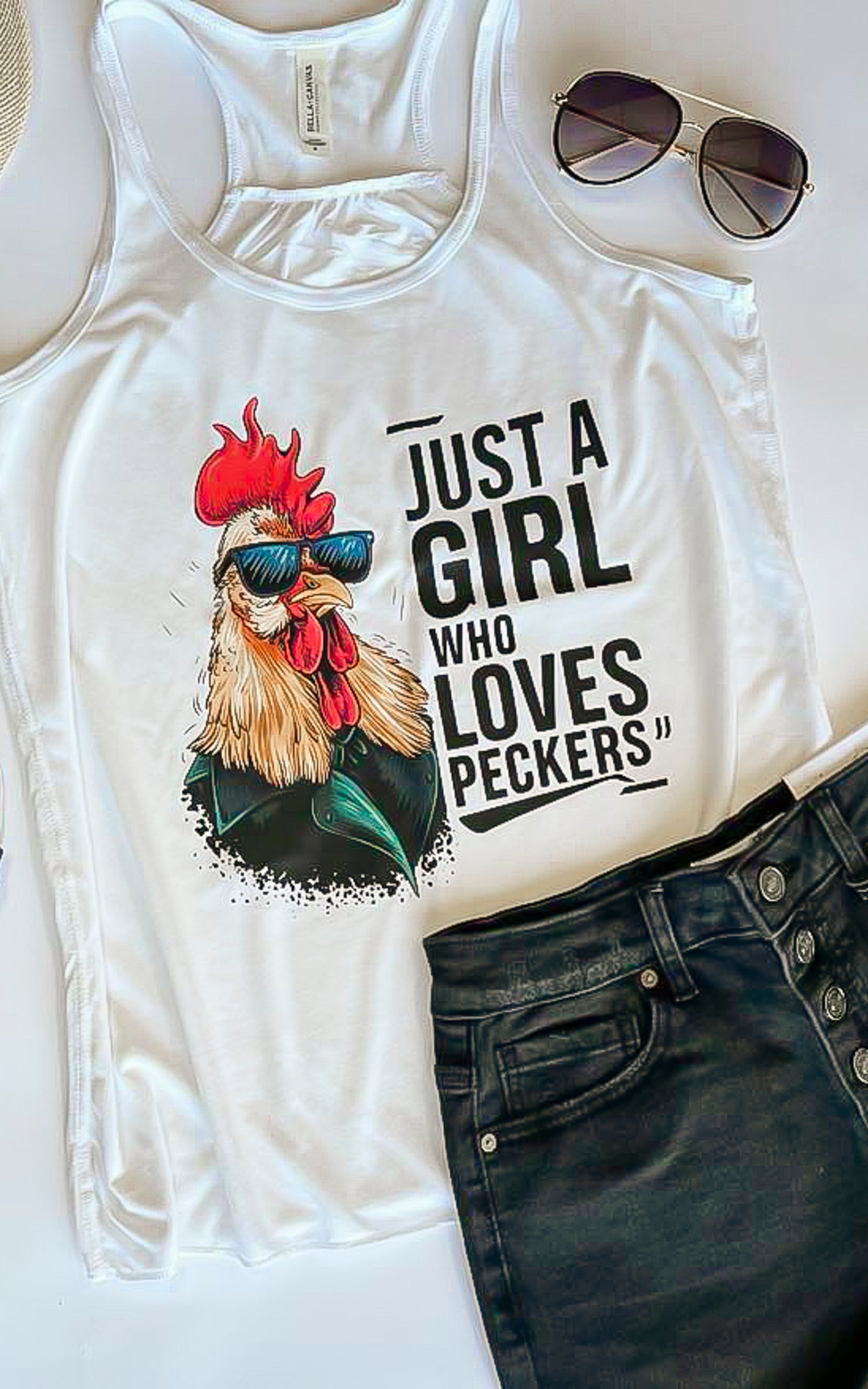 Just a Girl who Loves Peckers Snarky Racerback Tank Top