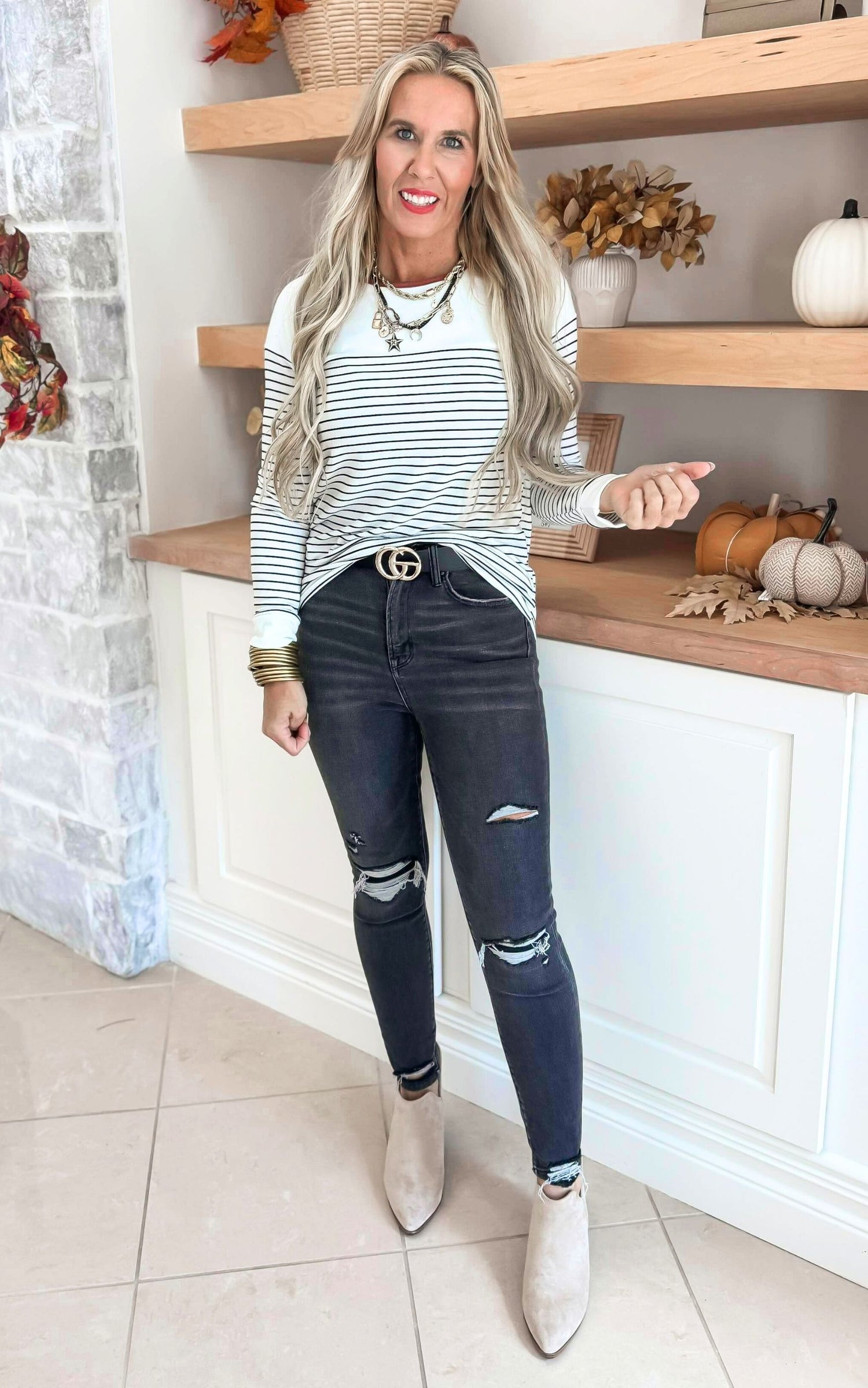 Keep Warm Striped Long Sleeve Lightweight Sweater Top - Final Sale