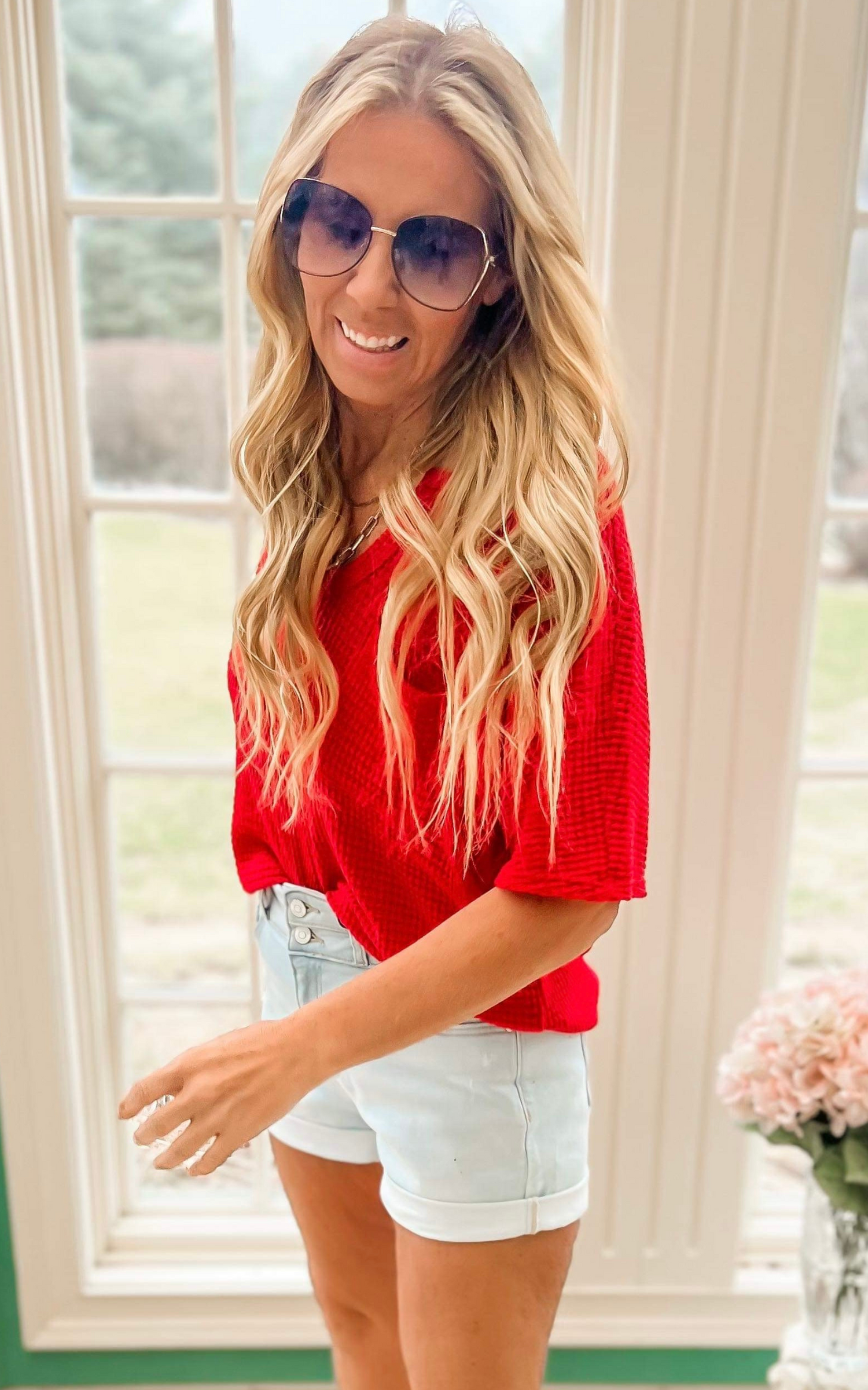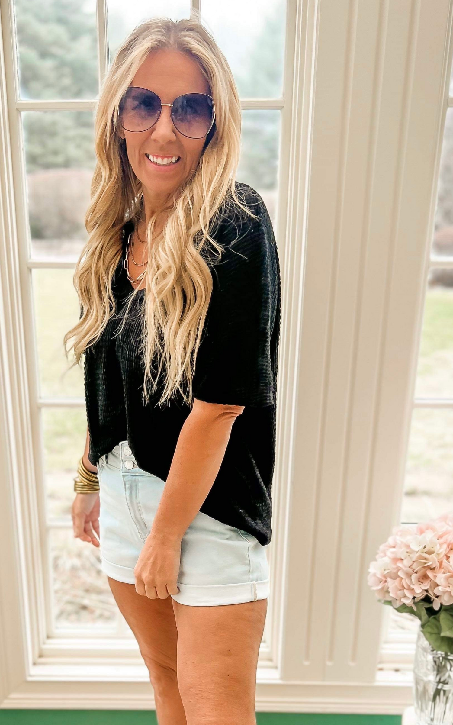 Keyhole Waffle Tee by Zenana | FINAL SALE