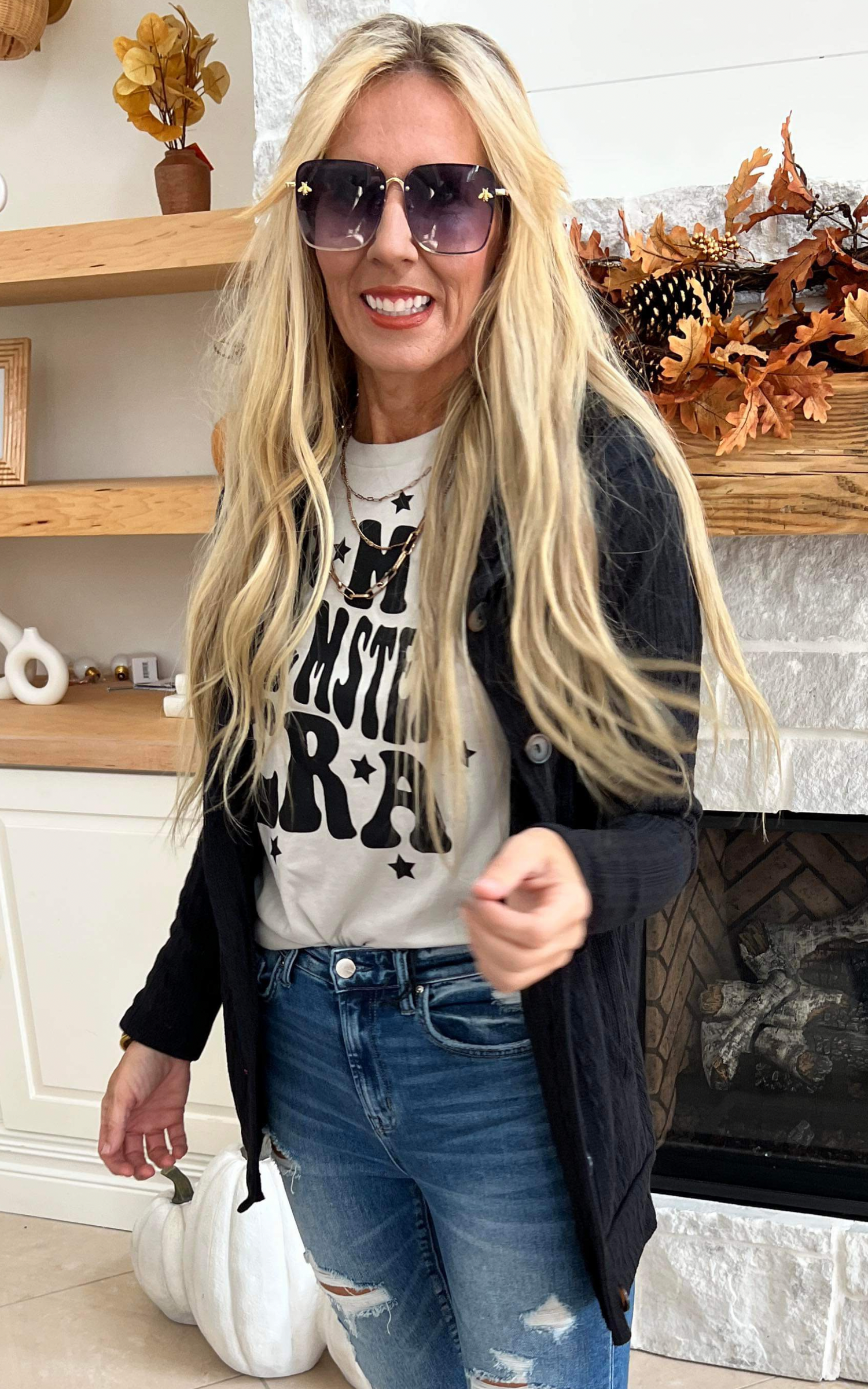 FIT DESCRIPTION: Sara is 5’7” and a size 5 in denim. She has a 36D bust. She is wearing a size Small. Be sure to watch the full FIT VID in the App (SHOP BAD HABIT) to see how it fits and feels.