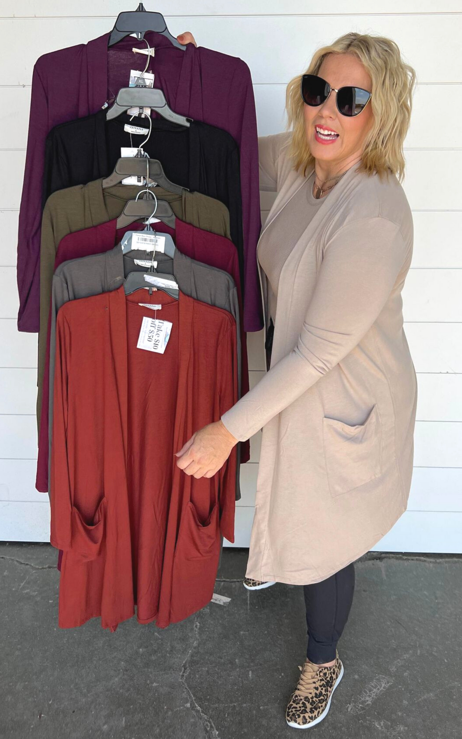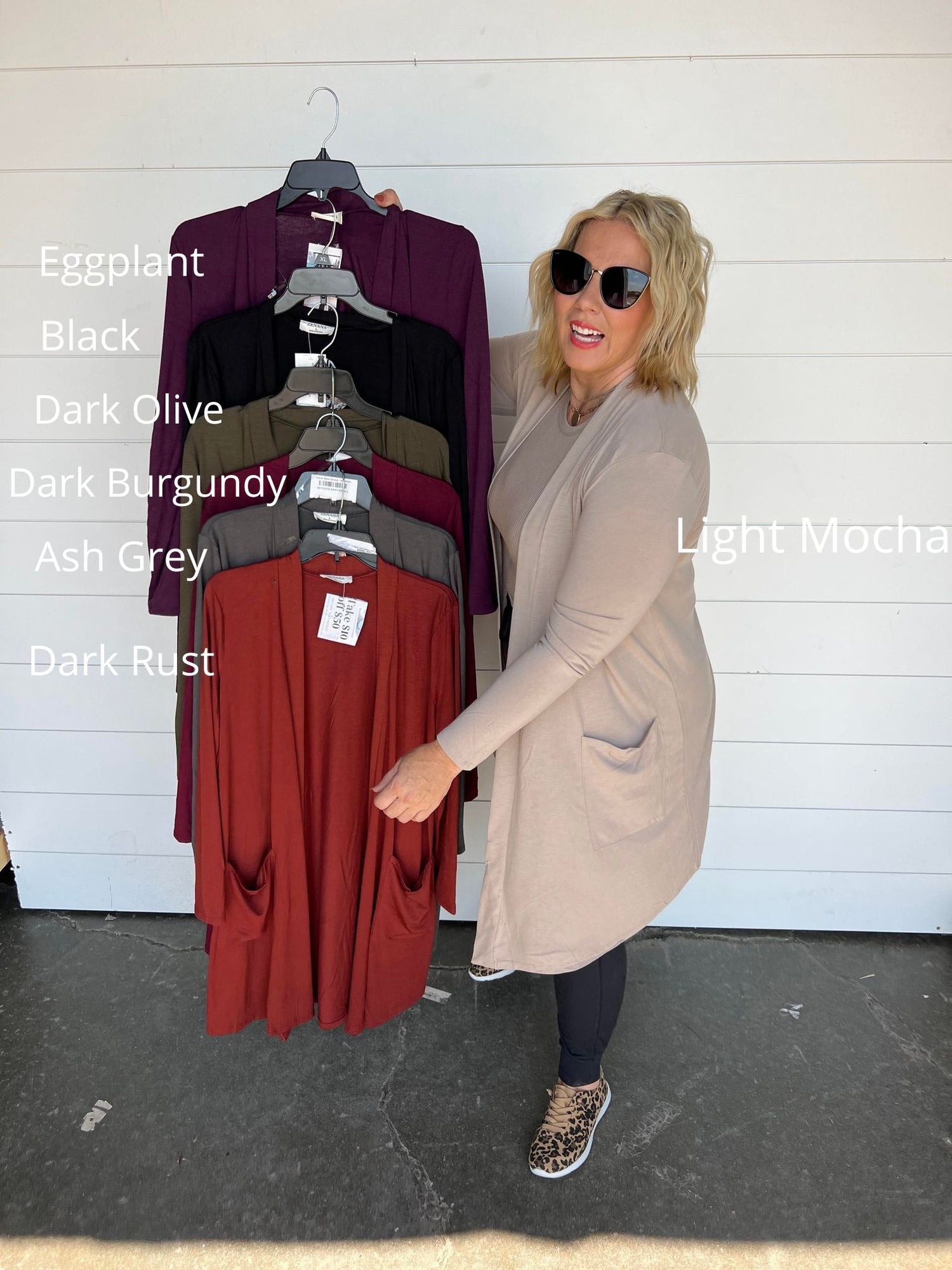 Our slouchy lightweight long sleeve cardigans are perfect way to add a lil warmth without the bulk on those days in the office when the boss has the AC on all down to 50degrees.