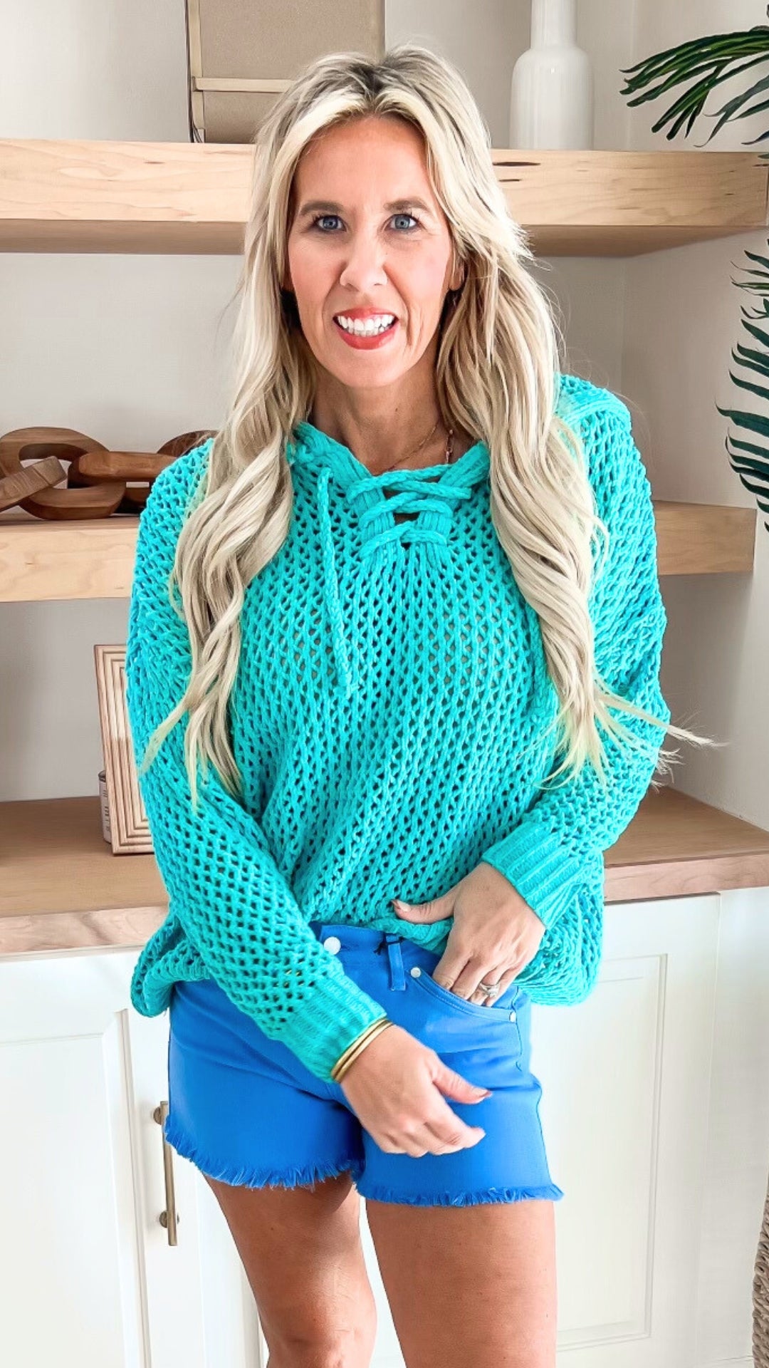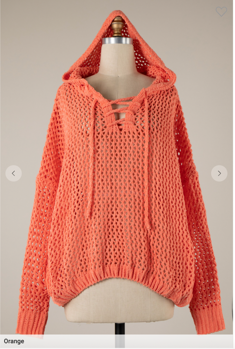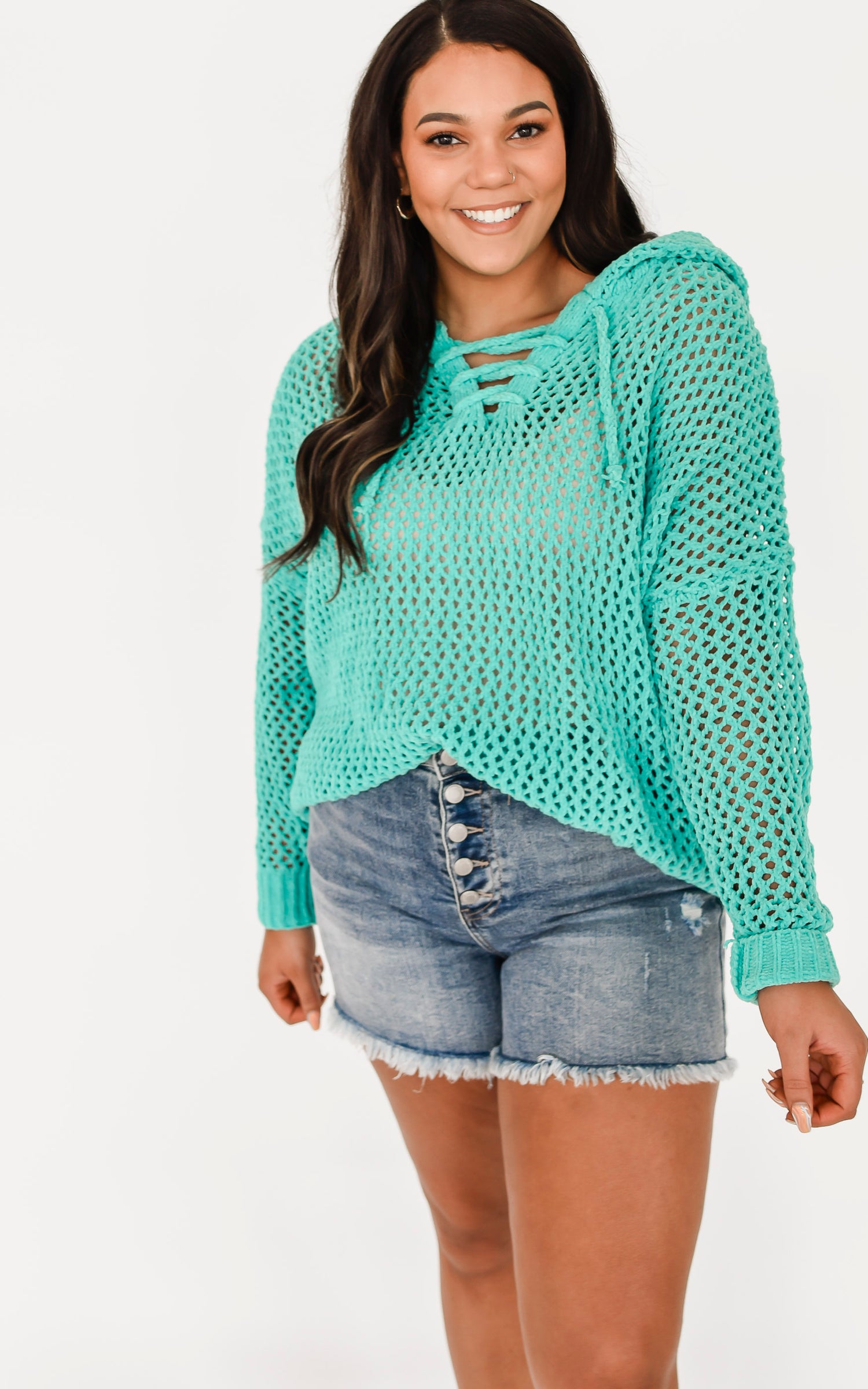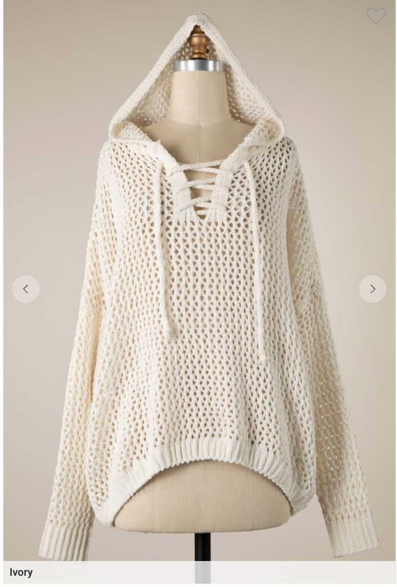 Lace Open Up Crochet Chenille Sweater Hoodie - Final Sale**