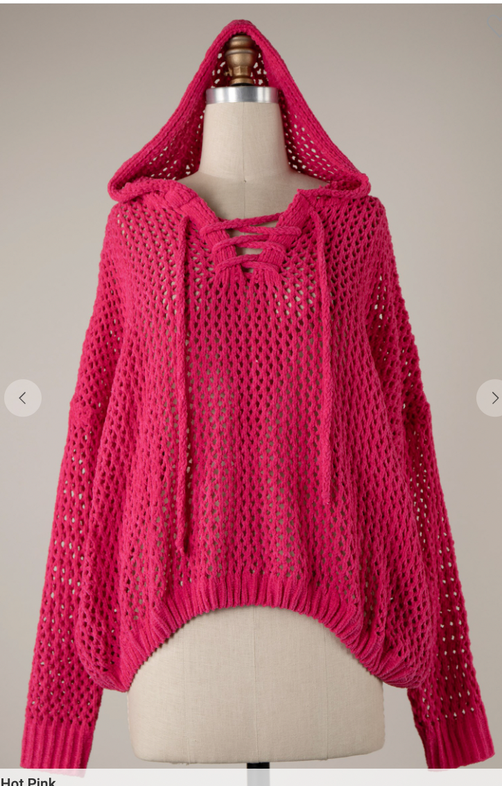 Get cozy and playful with our Lace Open Up Crochet Chenille Sweater Hoodie! Made with soft chenille material, this hoodie features intricate lace detailing and a unique open up design. Perfect for adding a touch of fun to your wardrobe.