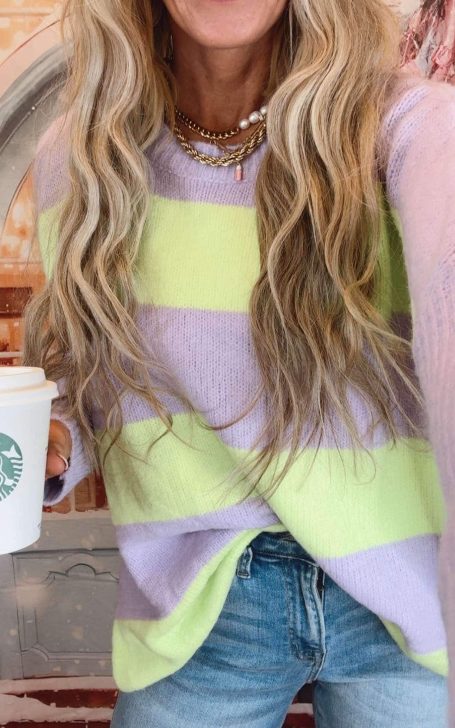 Lavender Striped Knit Sweater Top