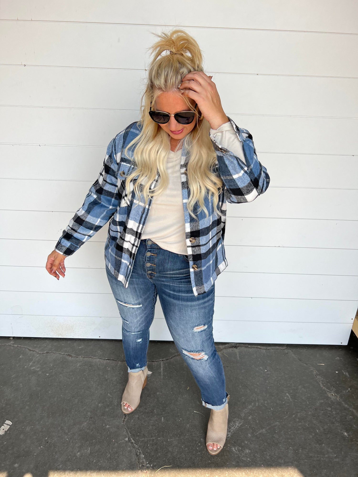 This Plaid Button Up Shacket can be styled as a layering top or as a jacket! This plaid perfect for rocking with your favorite gameday gear.