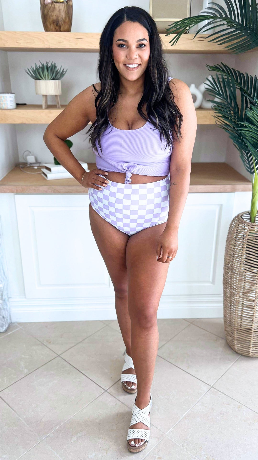 Leisure Reversible Midi Swim Bottoms | Lavender Love Check (BOTTOM ONLY) - Final Sale