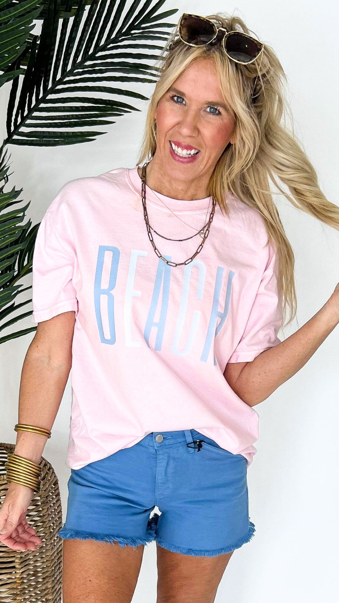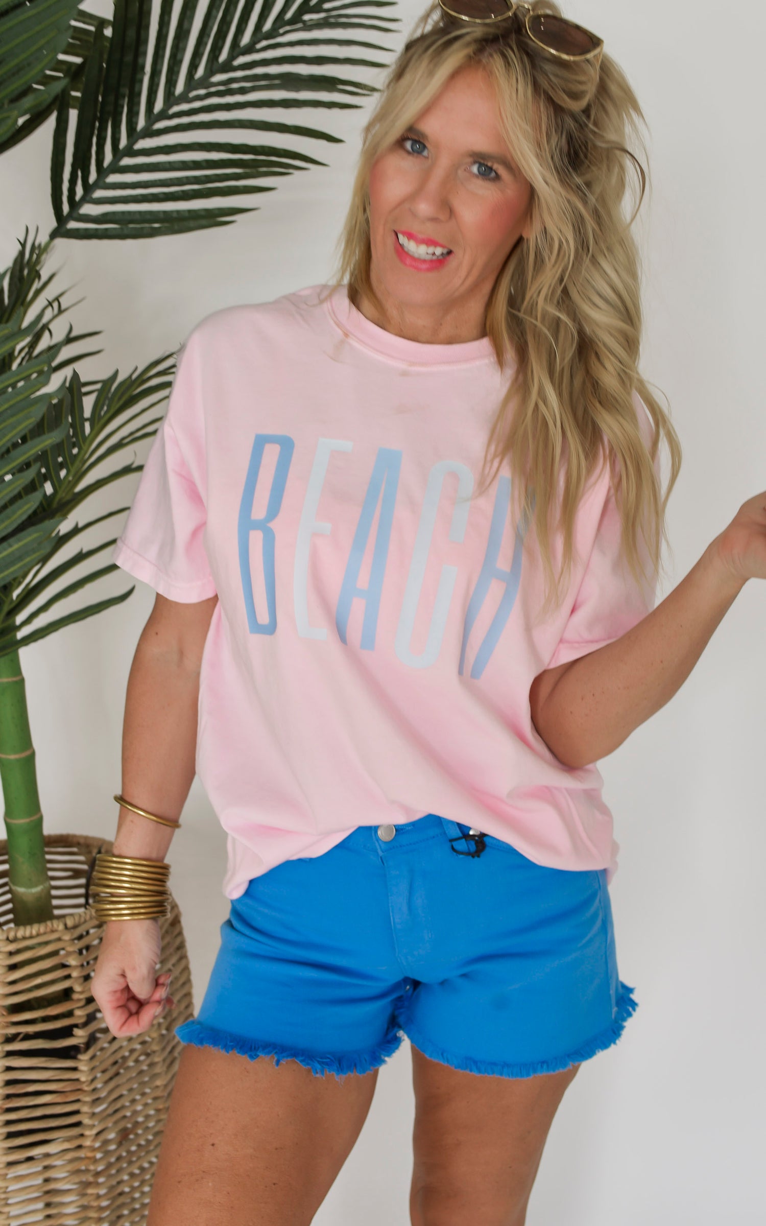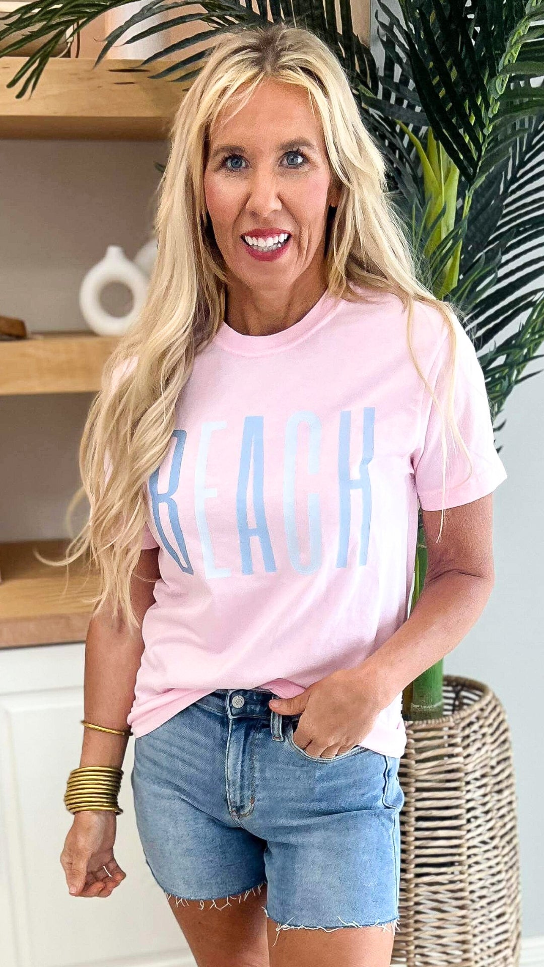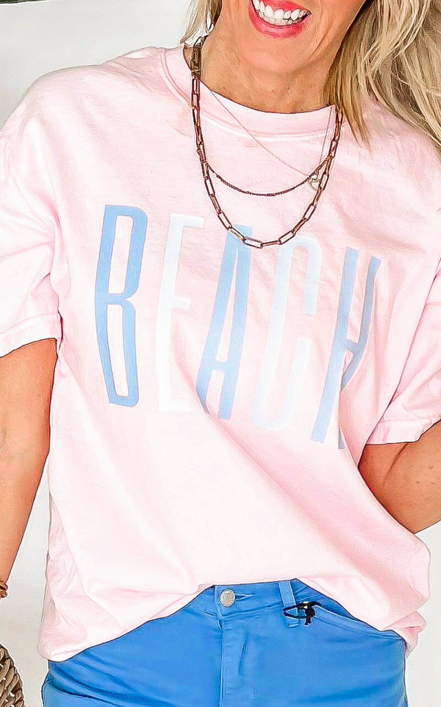 Get ready for some serious fun in the sun with our Light Pink "BEACH" Garment Dyed Graphic T-shirt! Made with top-quality materials and unique garment dyeing process, this tee will keep you cool, comfortable, and stylish while you soak up those rays. Beach life just got a whole lot cooler.*