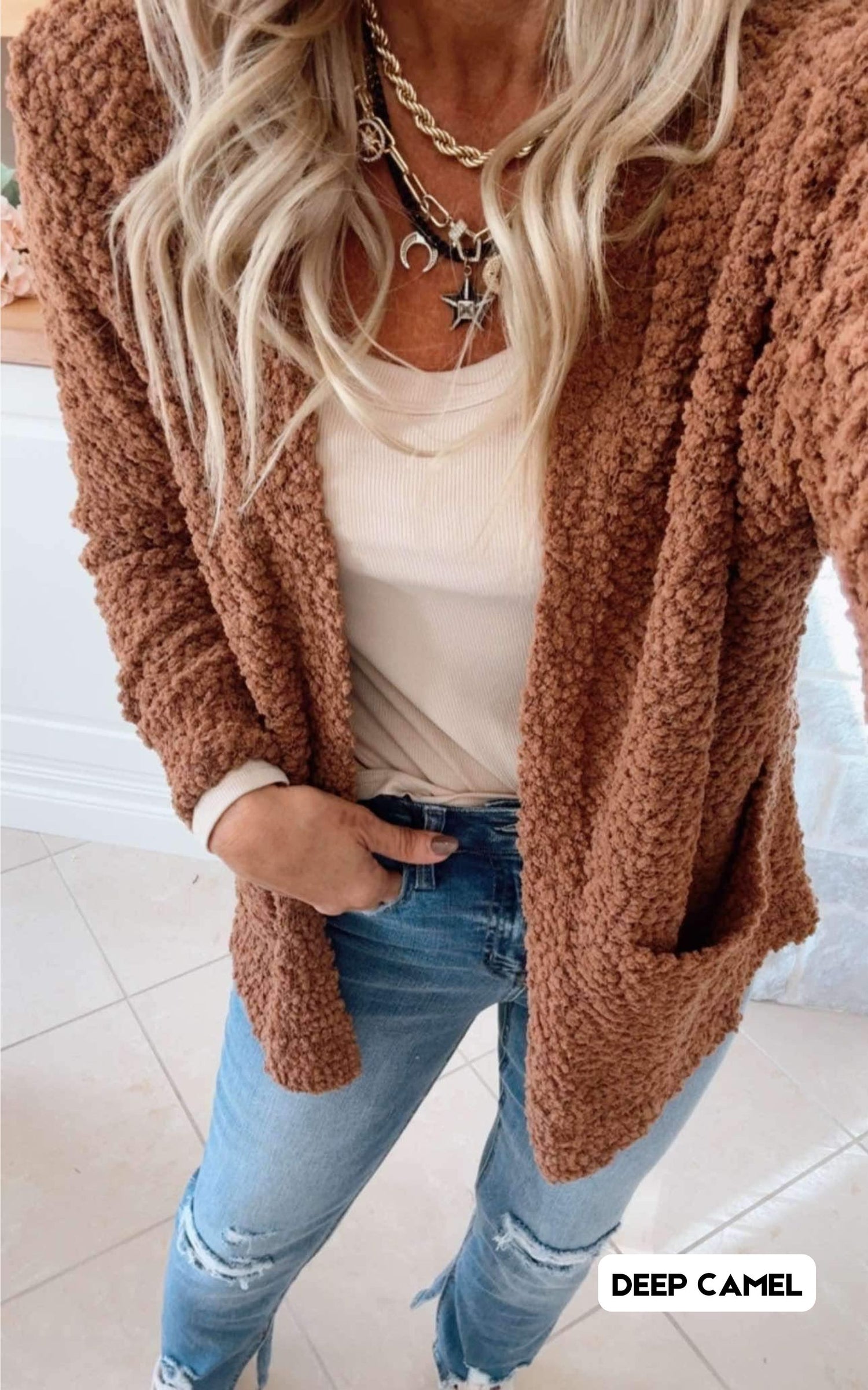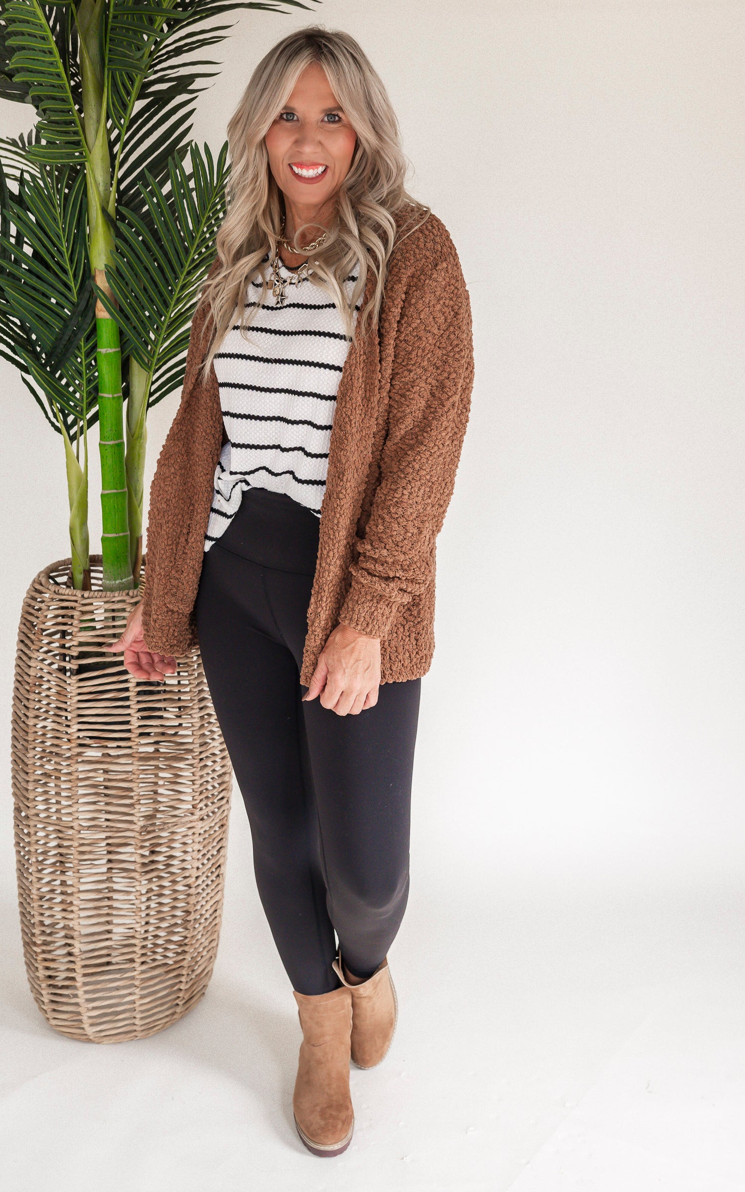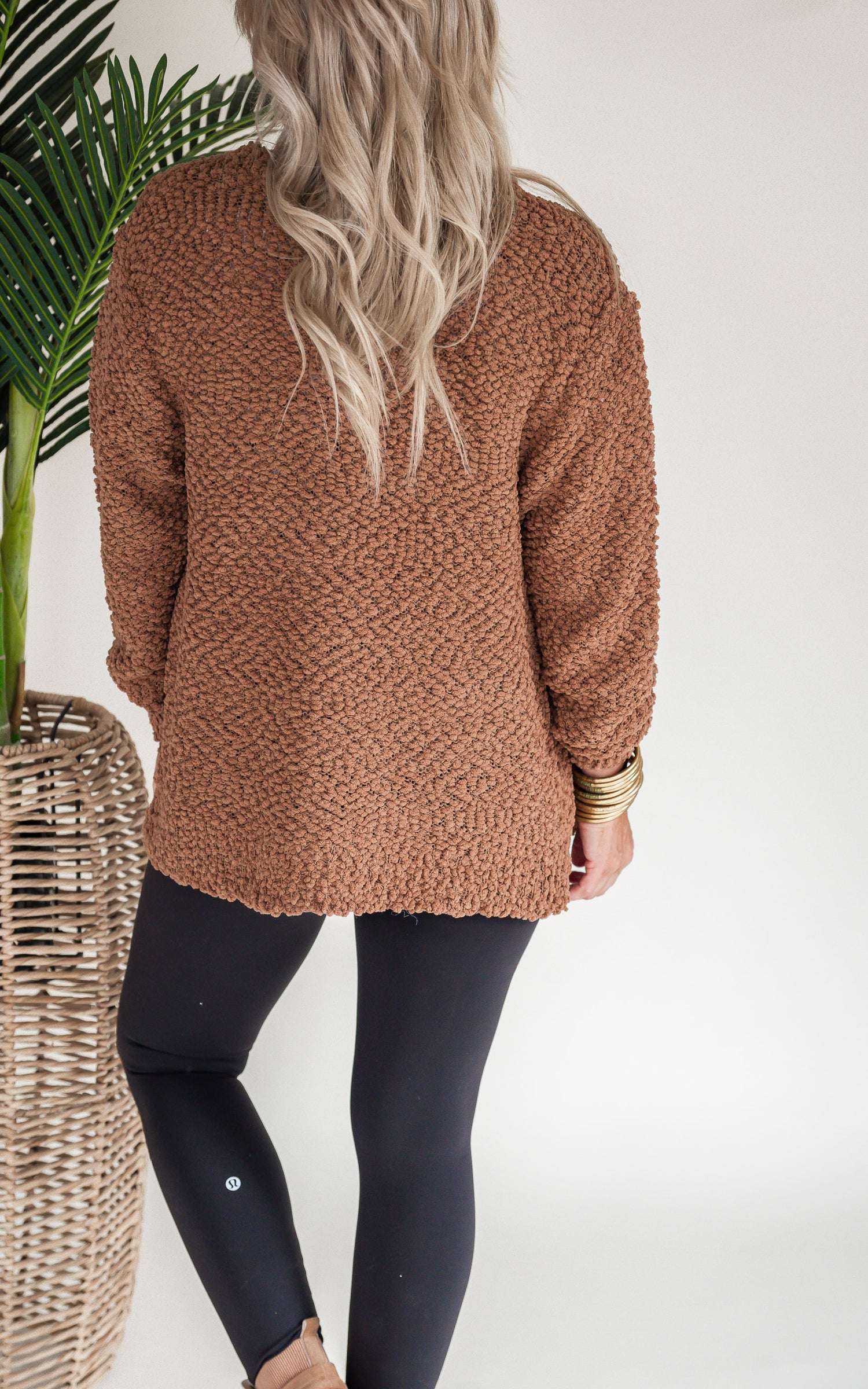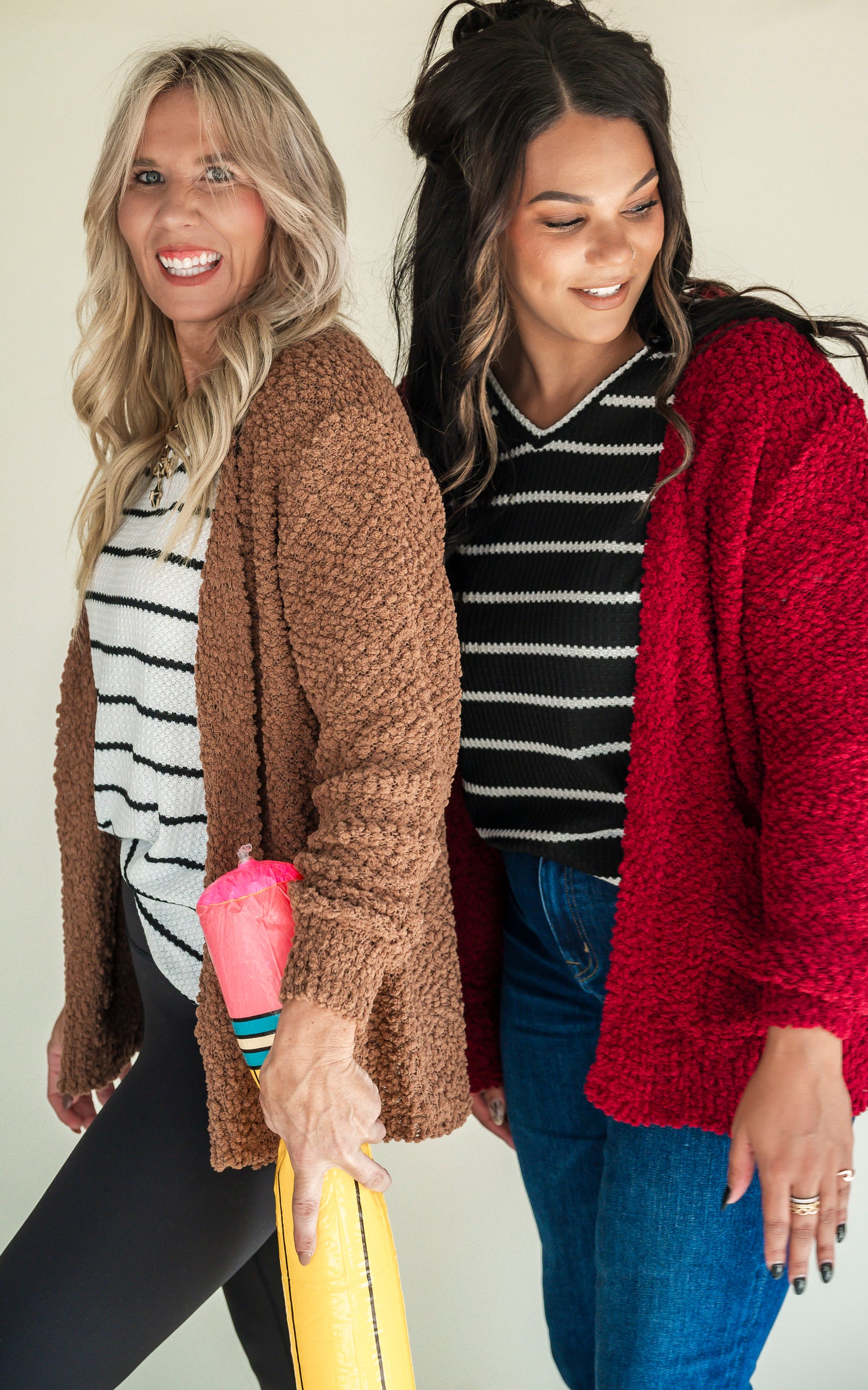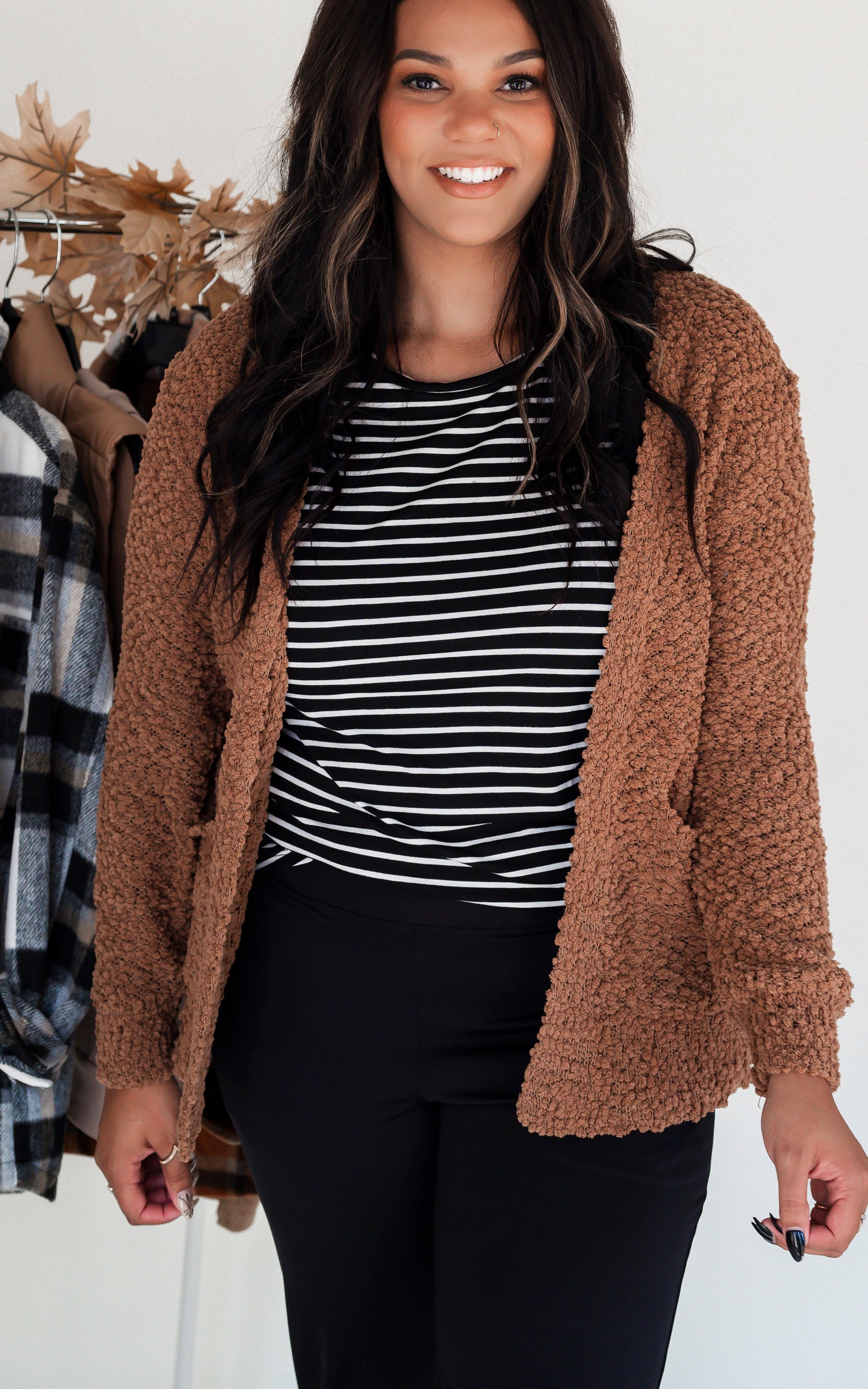 Add a touch of fun and texture to your wardrobe with our Long Sleeve Popcorn Cardigan. This cozy and stylish piece is perfect for chilly days and features a unique popcorn-like texture. Stay warm and stylish all season long with our Long Sleeve Popcorn Cardigan!**