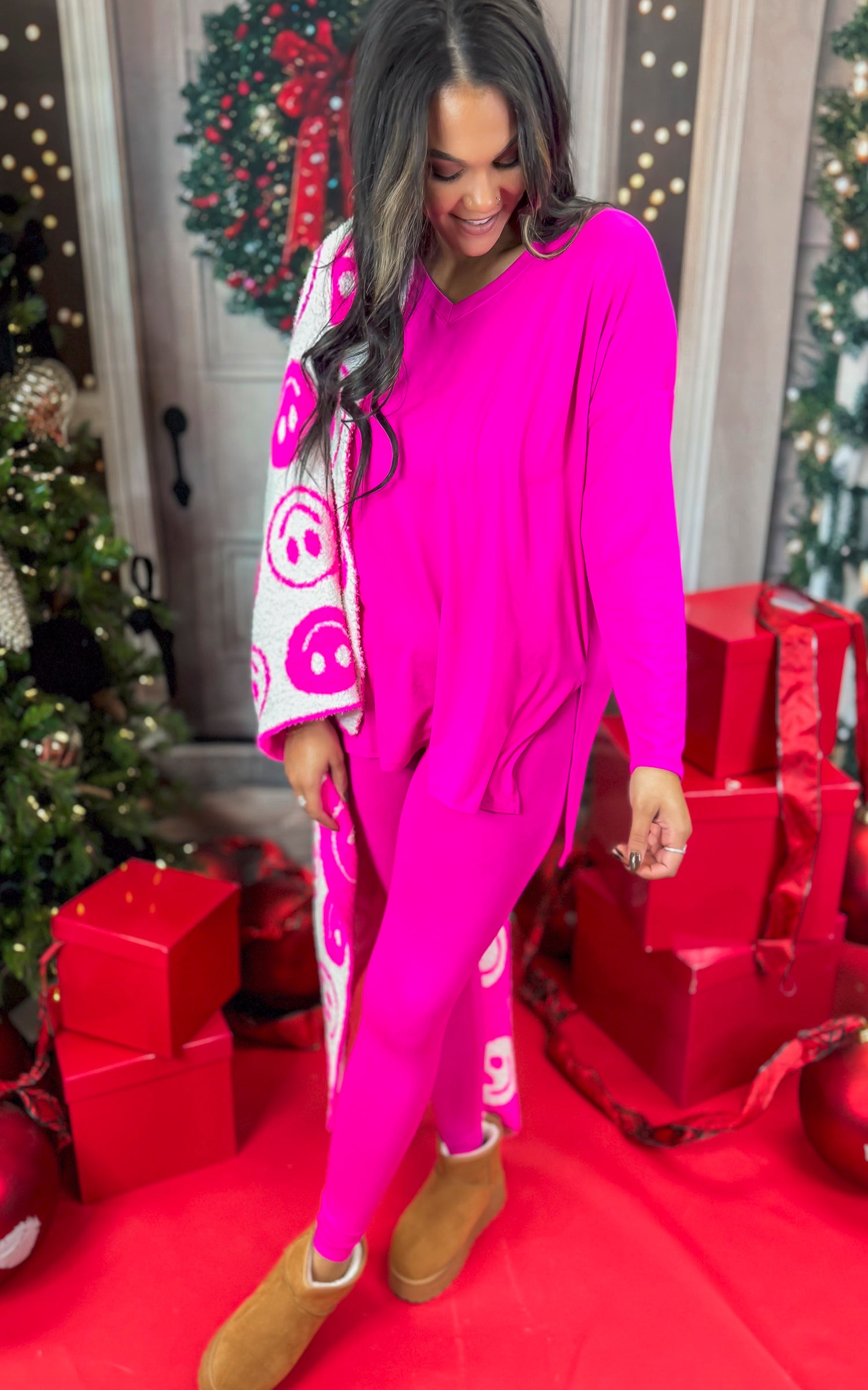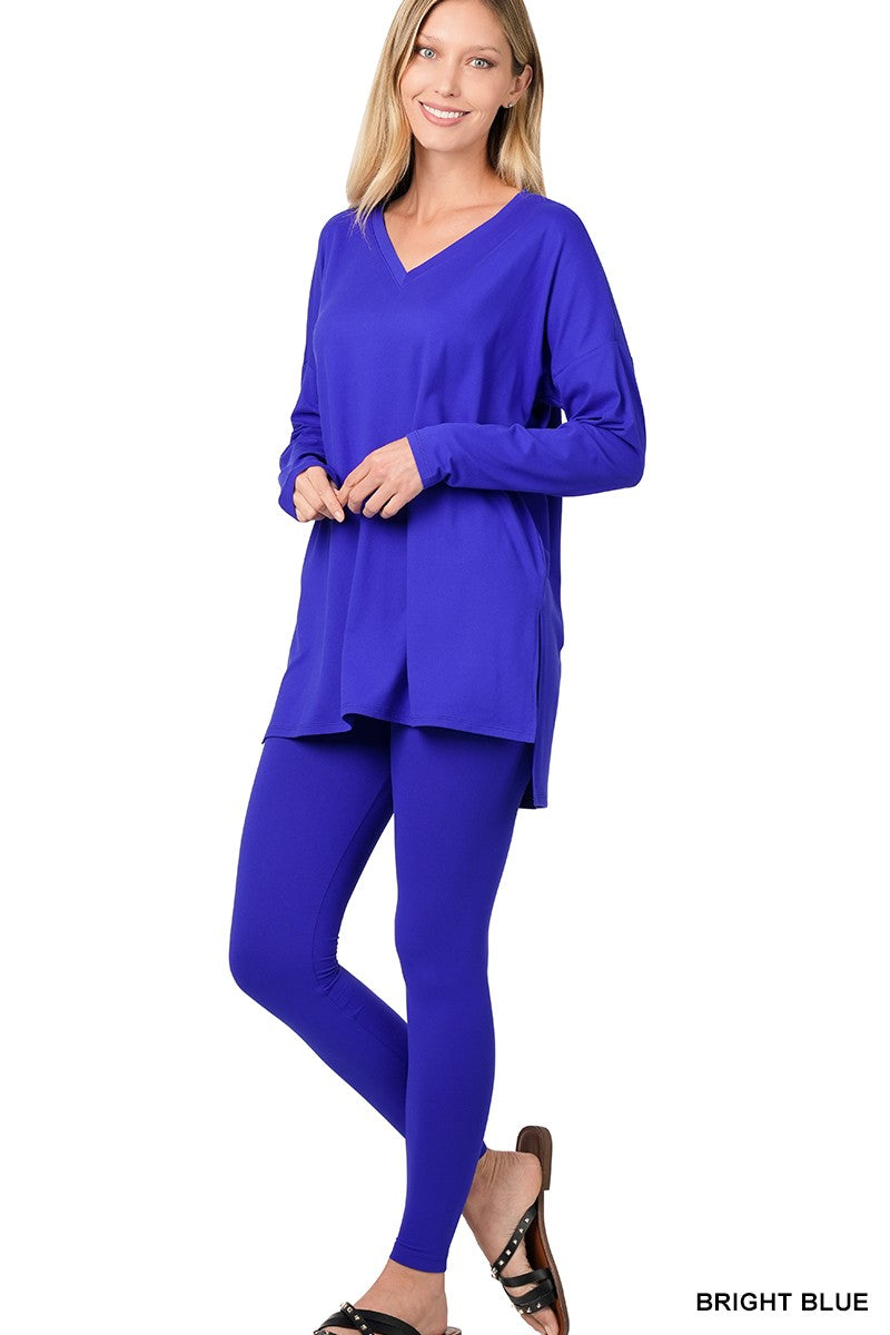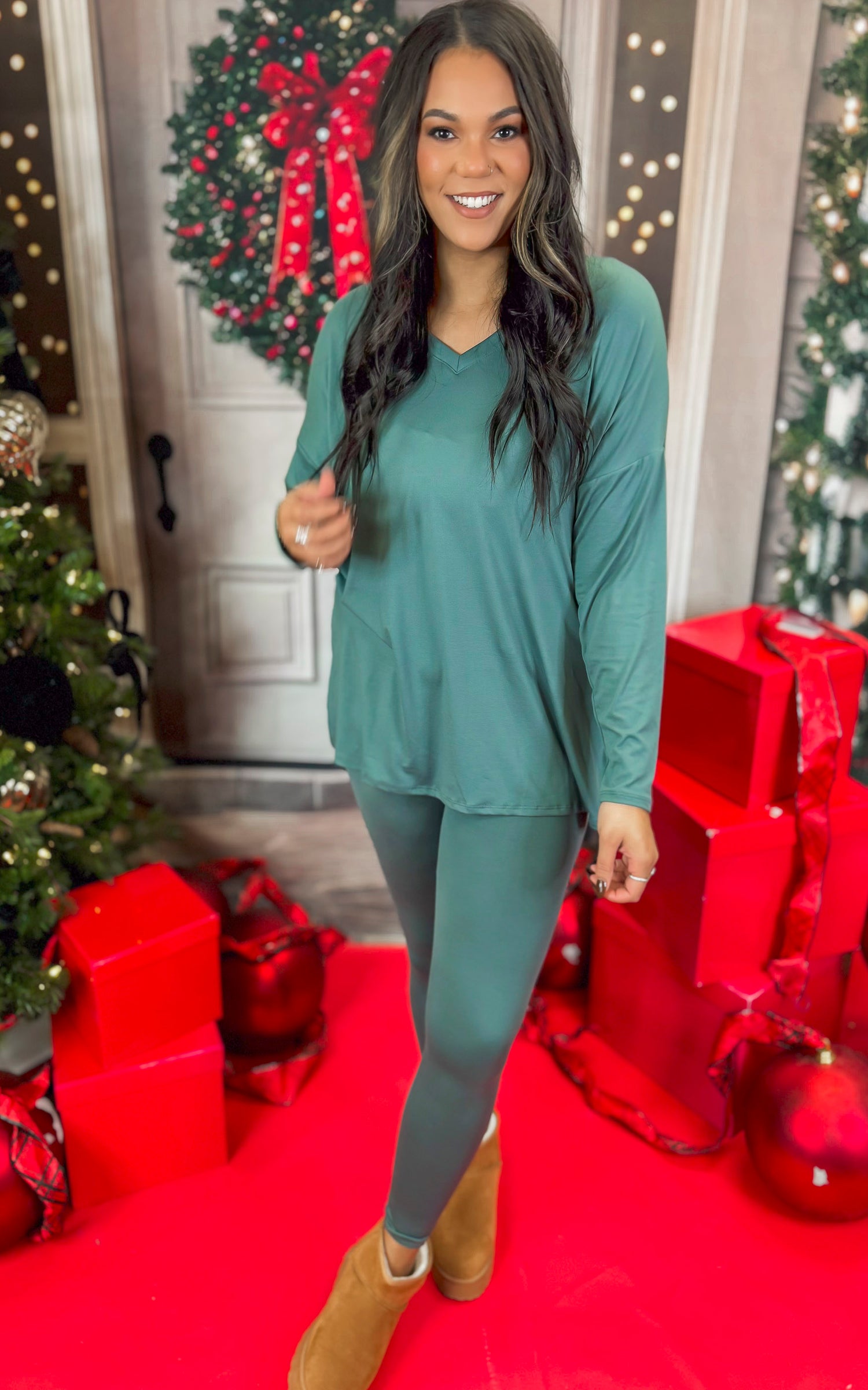 Long Sleeve V-Neck Microfiber Lounge Set - Final Sale