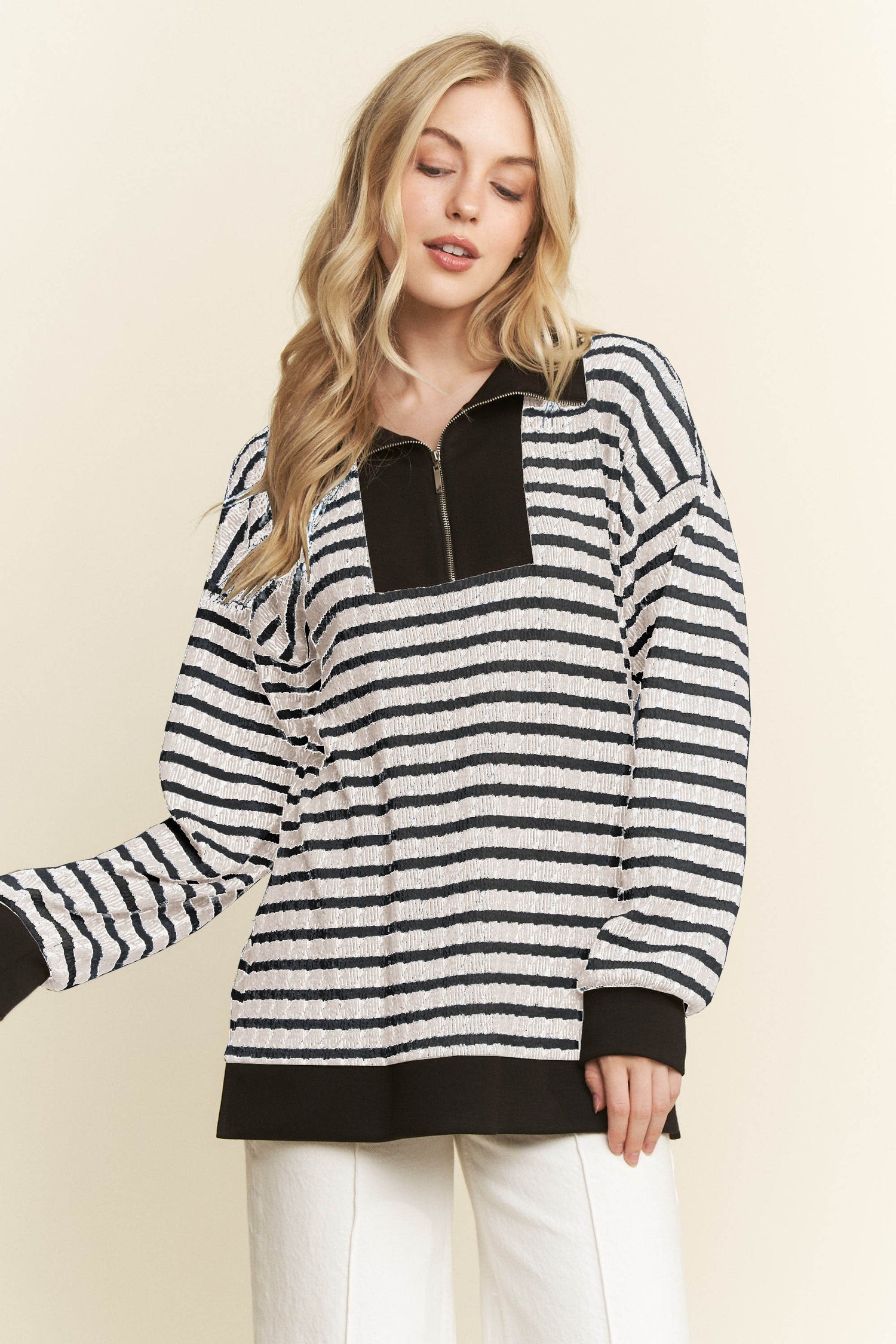 Long Sleeve Zip Up Jacquard Stripe Top | HEIMISH *NASHVILLE LIVE PREORDER