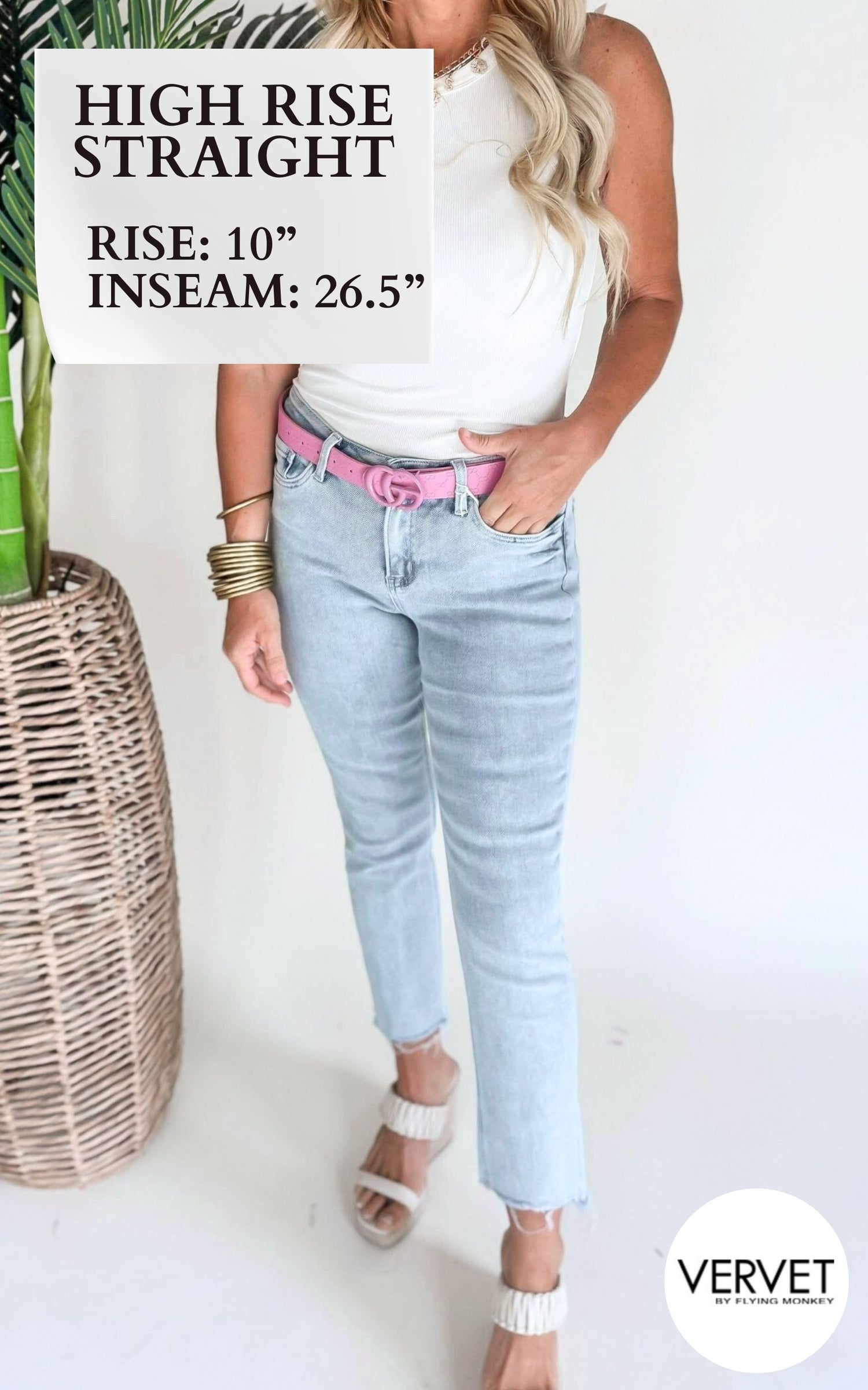 Score the perfect vintage look with LOVERVET's Notably High Rise Slim Straight Denim Jeans. These jeans offer a flattering high rise fit and a slim straight leg for a comfortable and stylish look. Add a touch of retro to your wardrobe with these must-have jeans!