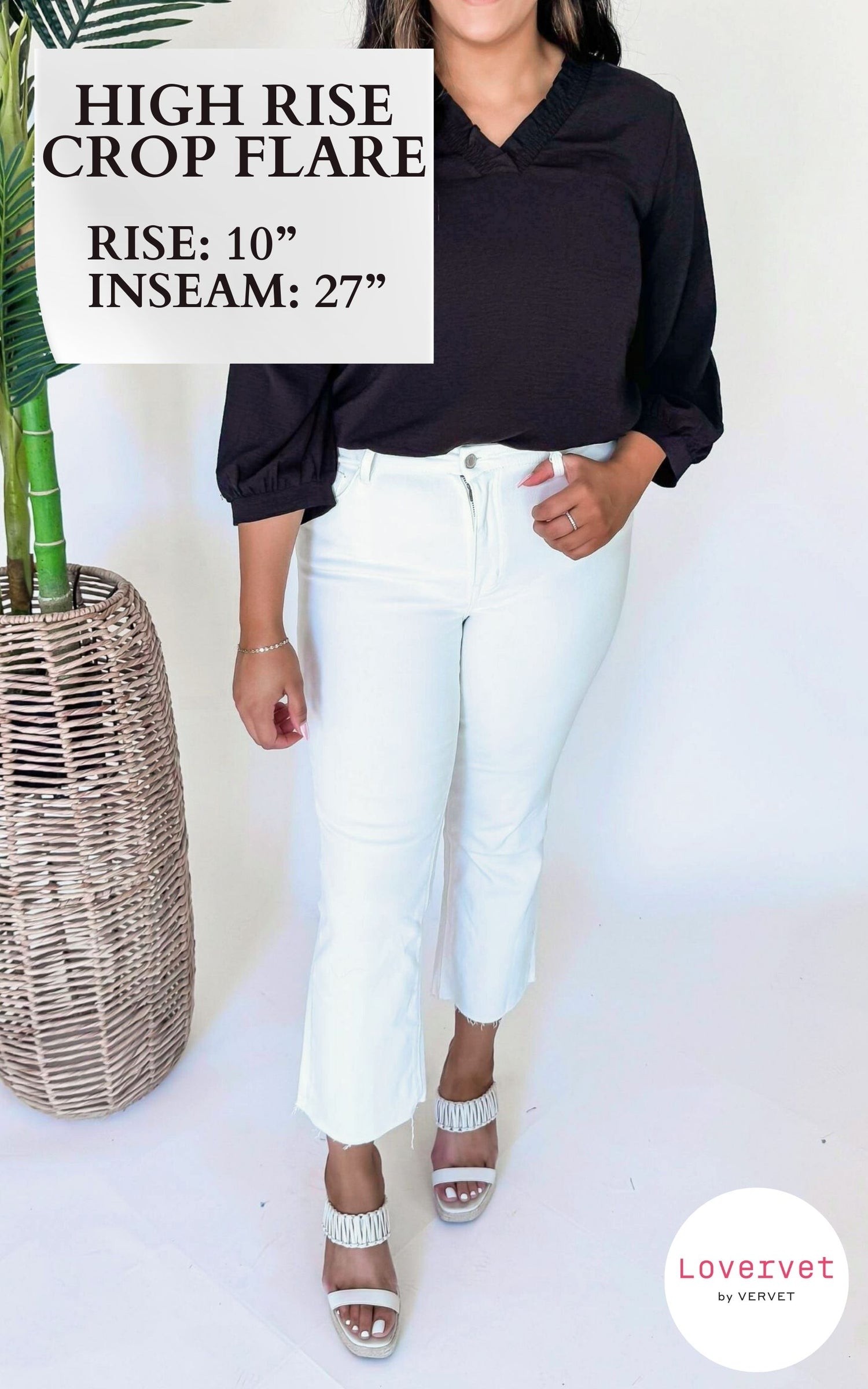 Lovervet | Optic White High Rise Seamless Crop Flare Denim Jeans - Final Sale