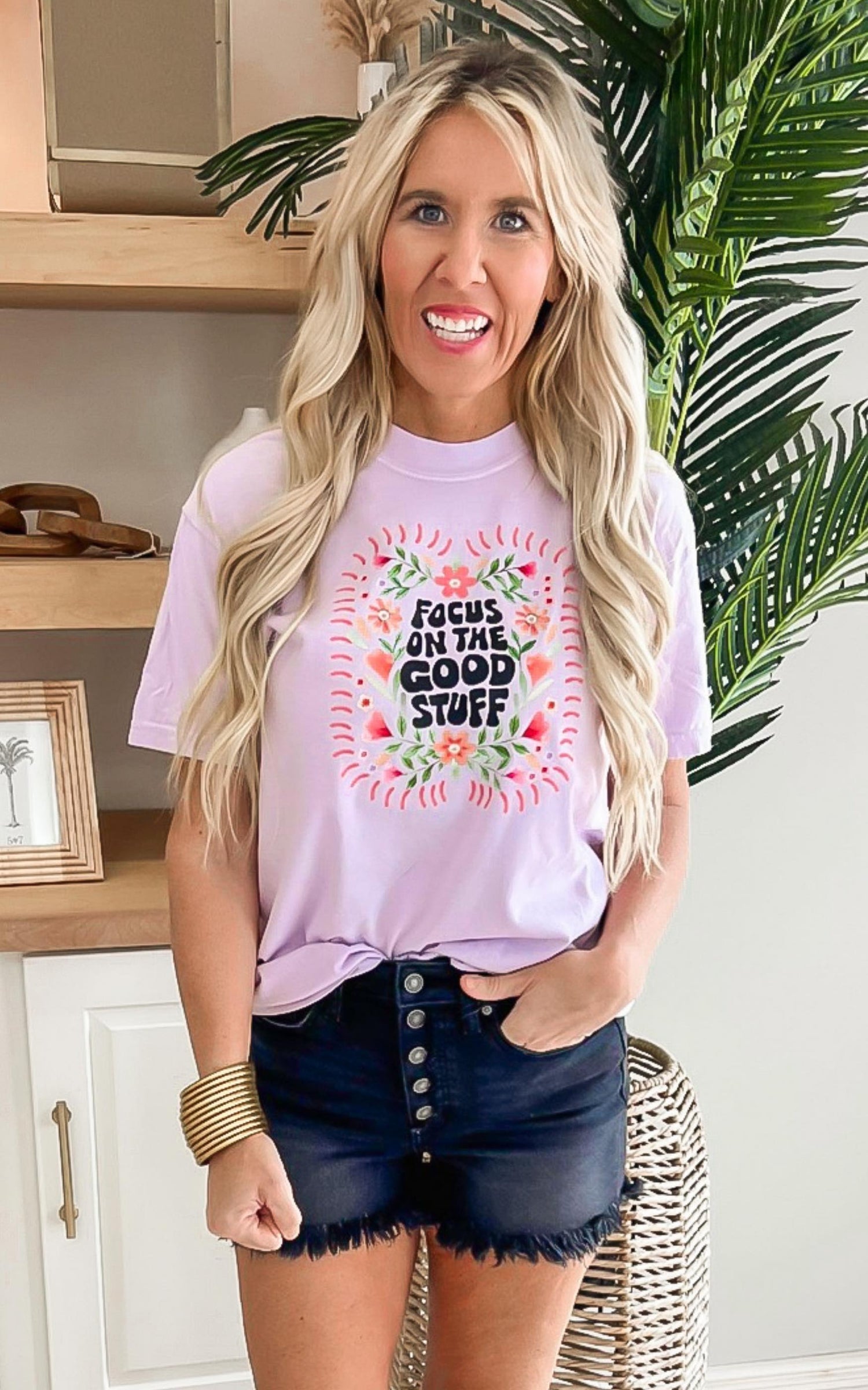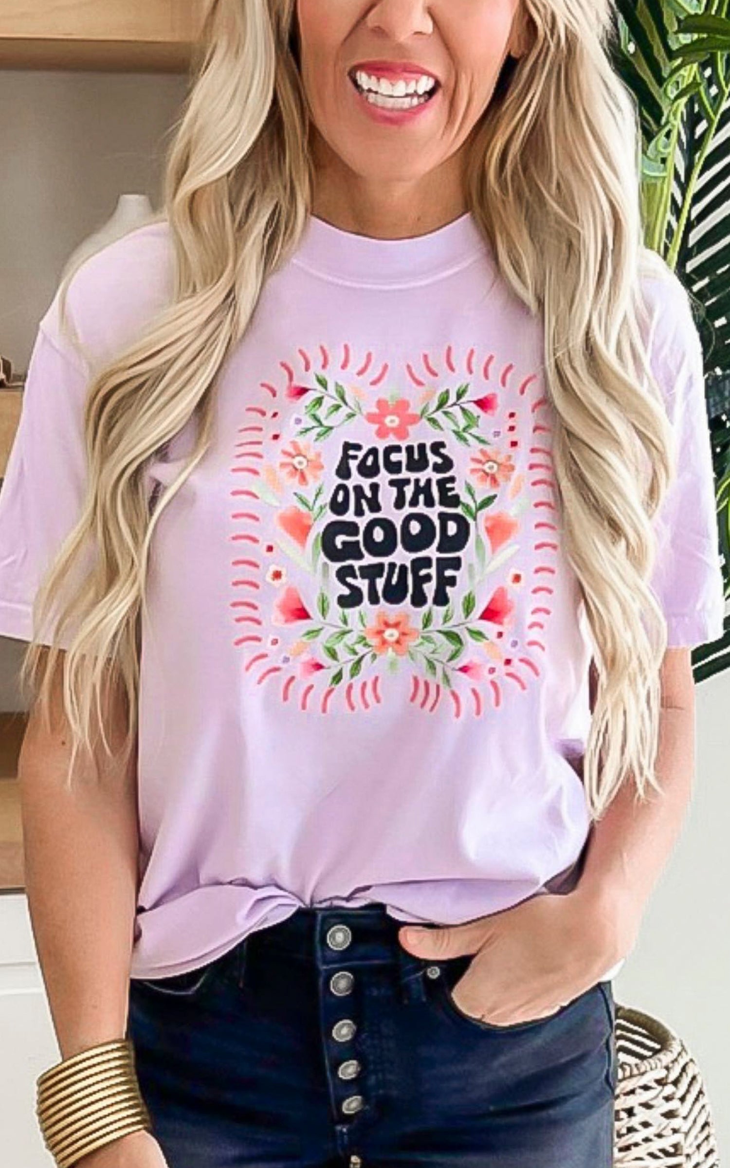 Lt Purple FOCUS ON THE GOOD Garment Dyed Graphic T-shirt