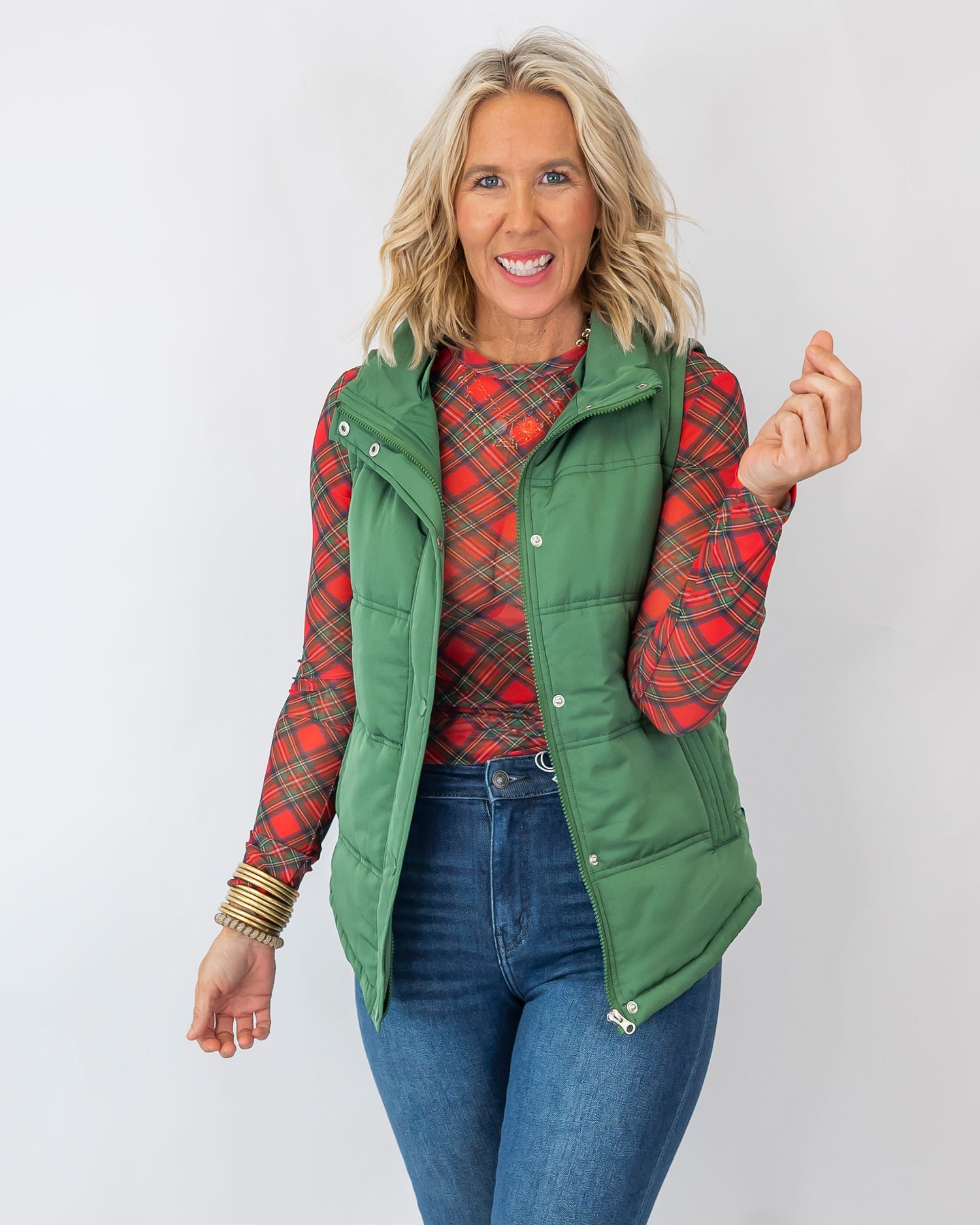 Meet your new festive favorite — the Marlie Holiday Plaid Mesh Top! This lightweight, stretchy mesh long sleeve brings all the Christmas cheer with its bold red-and-green plaid print. Perfect for layering under vests, sweaters, or even a little holiday sparkle.