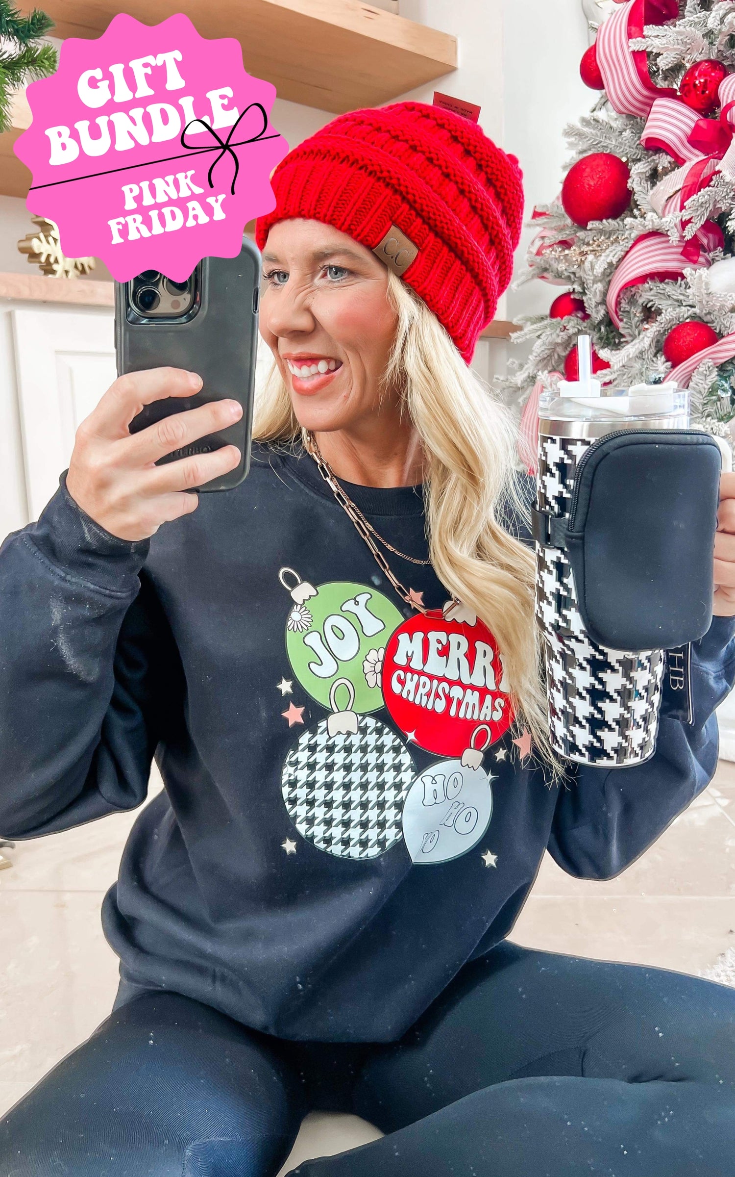 Nothing says "Merry Christmas" like the Christmas Bulb Gift Set! Get all 4 festive items—including a Merry Joy, a Houndstooth Cup, a Red Hat, and a Black Tumbler Bag—at a special price of $56 (an amazing $40 savings!). You'd be a real Grinch to miss out! 🤶