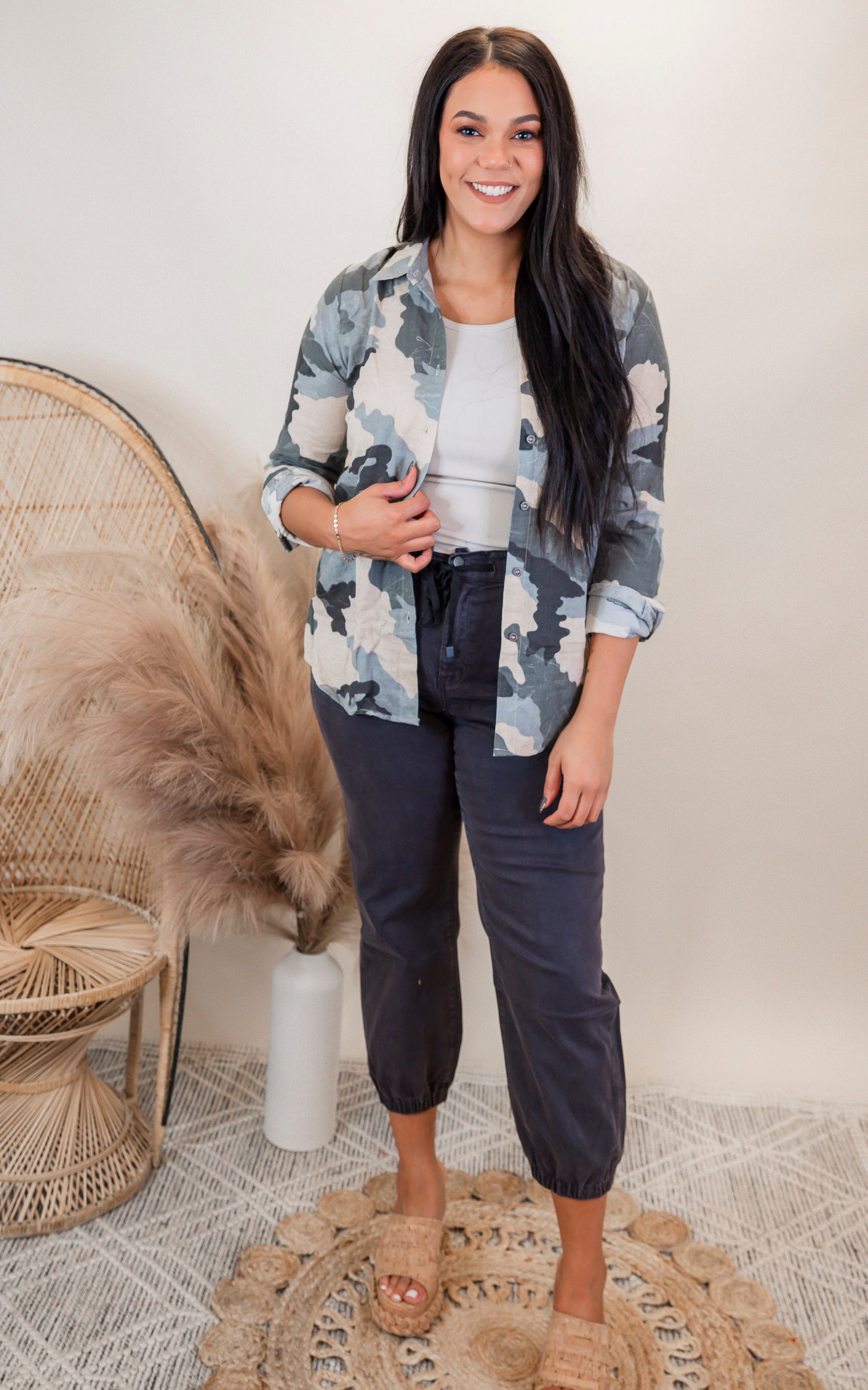 Get ready to lounge in style with our Mica Charcoal Grey High Rise Joggers! Featuring a comfortable high-rise fit and trendy charcoal grey color, you'll be ready to relax with a touch of fashion. These joggers are perfect for a casual day out or a cozy night in.