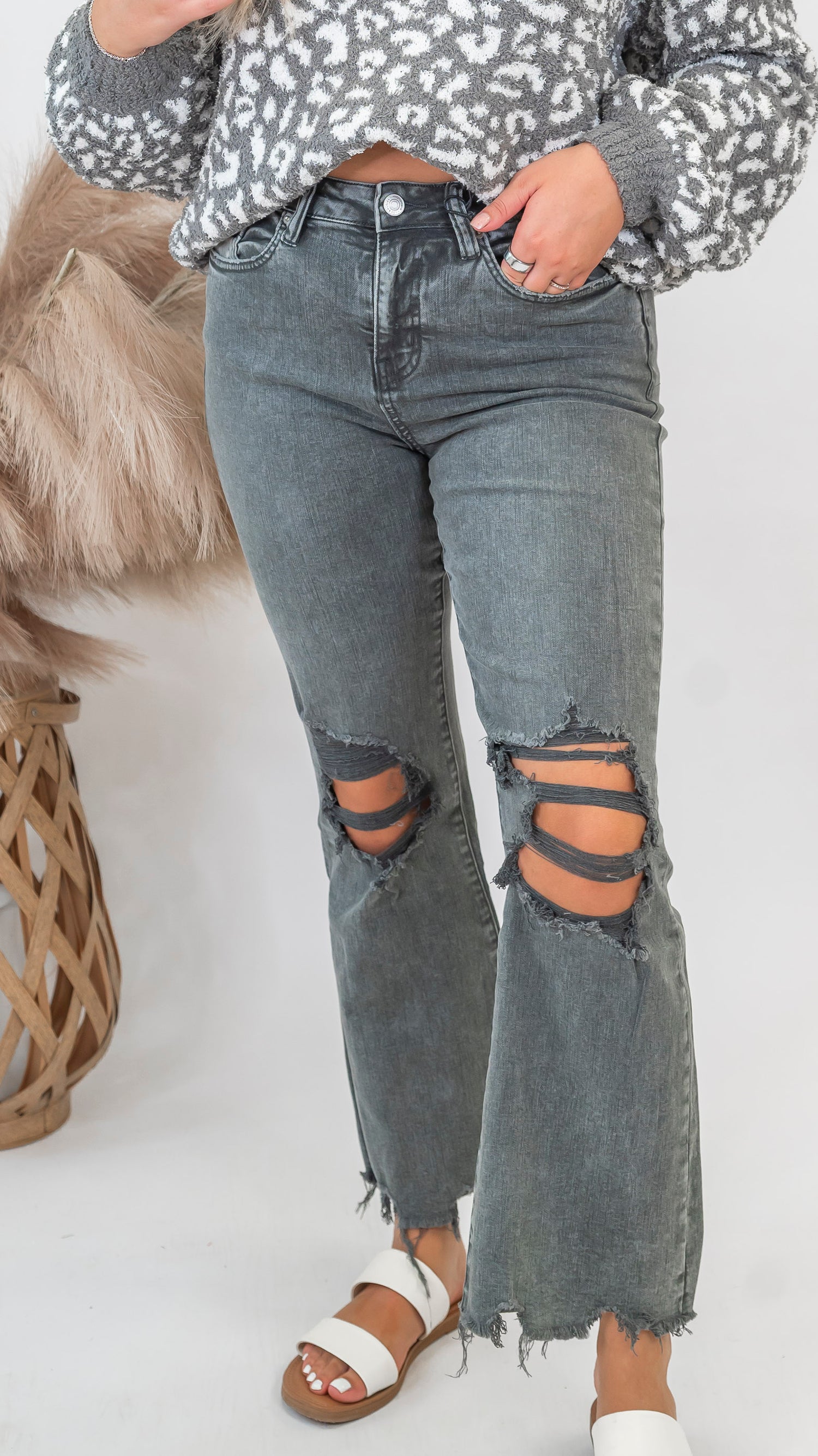 Put a funky twist on your denim game with Mica - The Marlowe High Rise Vintage Flare Jeans. These flattering flares feature a high rise cut for a retro look and a vintage wash for added style. Don't settle for boring jeans - stand out in Mica!