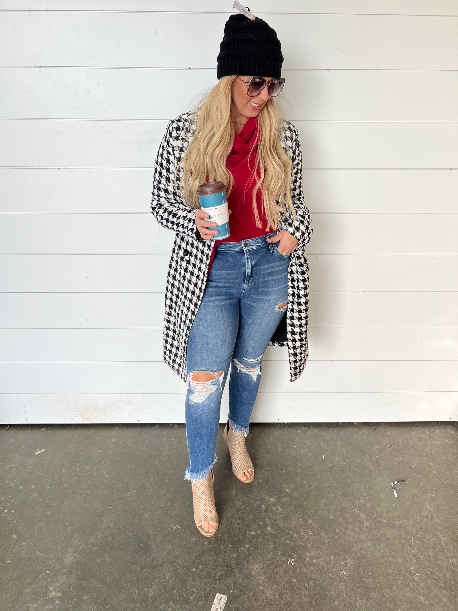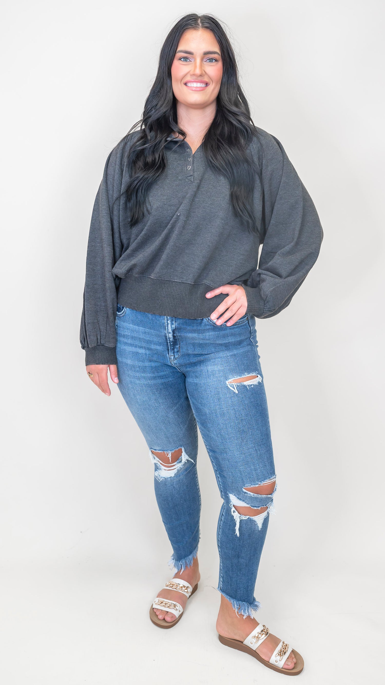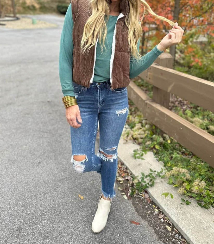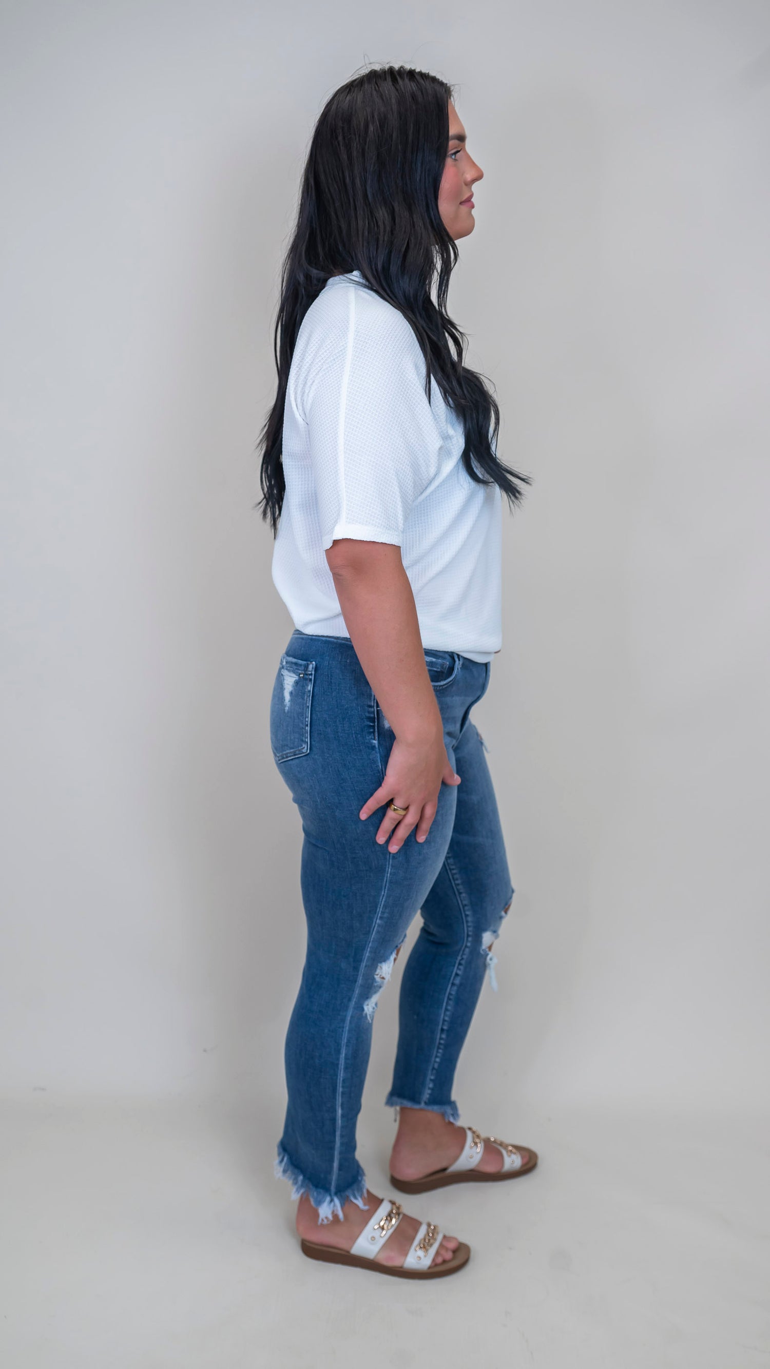 These slightly distressed hem skinnies are so freaking comfy and fit you like second skin. You will definately feel your booty pop in these.