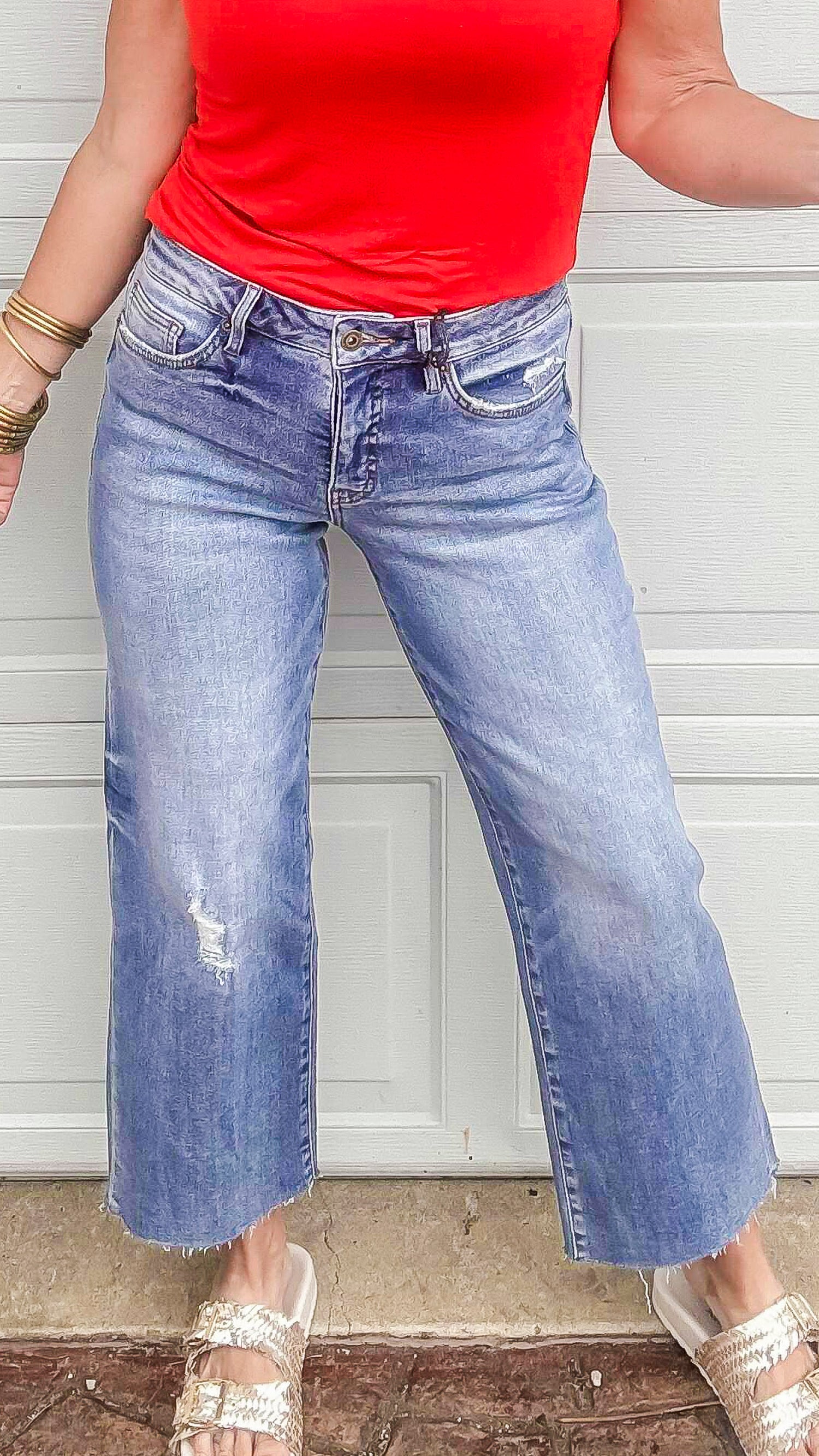 Mid Rise Tummy Control Wide Leg Denim Jean | MICA