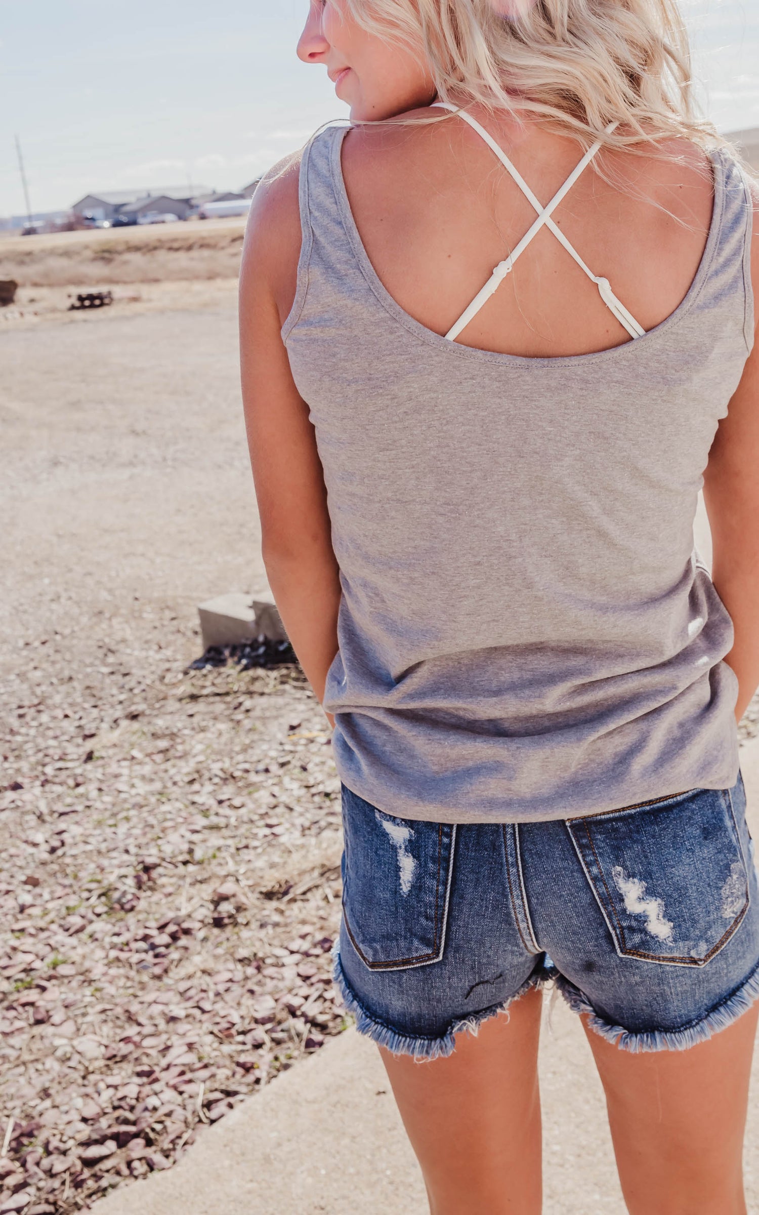 Channel that inner BHB Biker Babe in the "Ride or Die" Midnight Rider Tank Top. Complete your look with your denim shorts and rider boots. Add that bandana and stacked bracelets for those final touches.