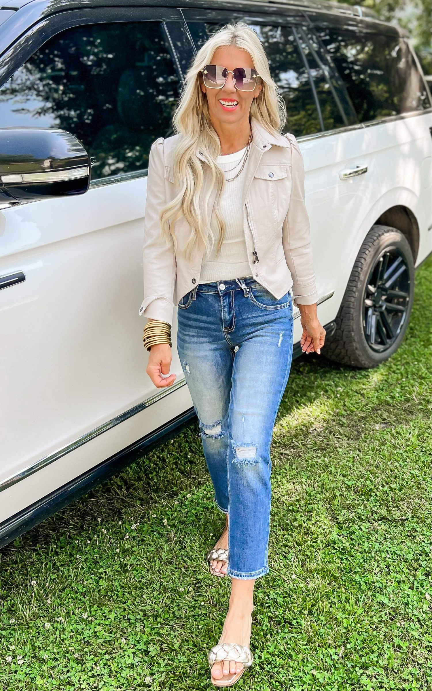 These Midrise Distressed Boyfriend jeans by RISEN provide a comfortable, flattering fit. The midrise waist provides a relaxed, yet stylish look, while the distressed jeans add the perfect touch of cool. Enjoy a perfect fit every time with RISEN.