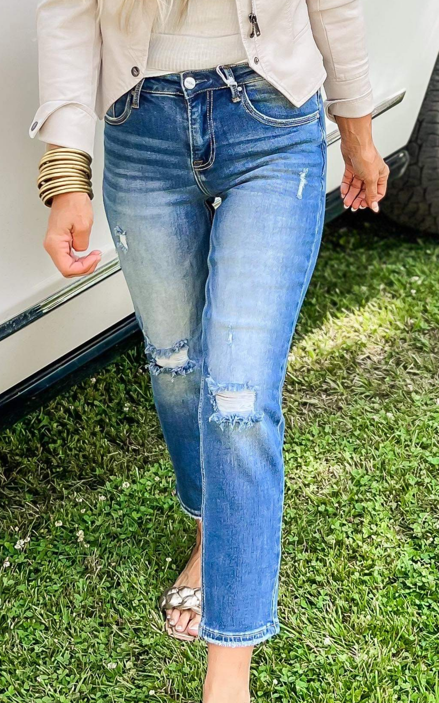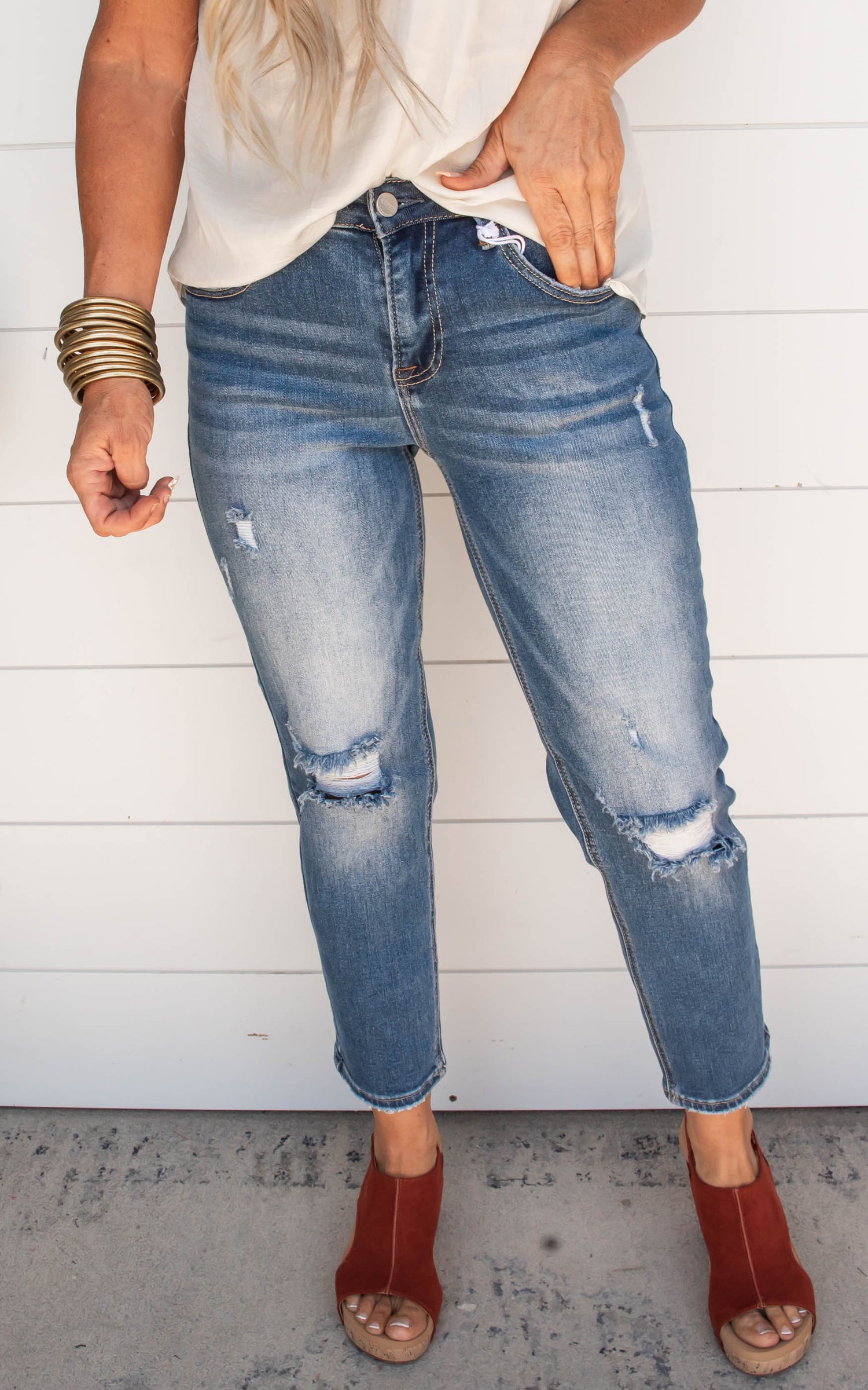 Midrise Distressed Boyfriend Denim Jeans- RISEN - Final Sale