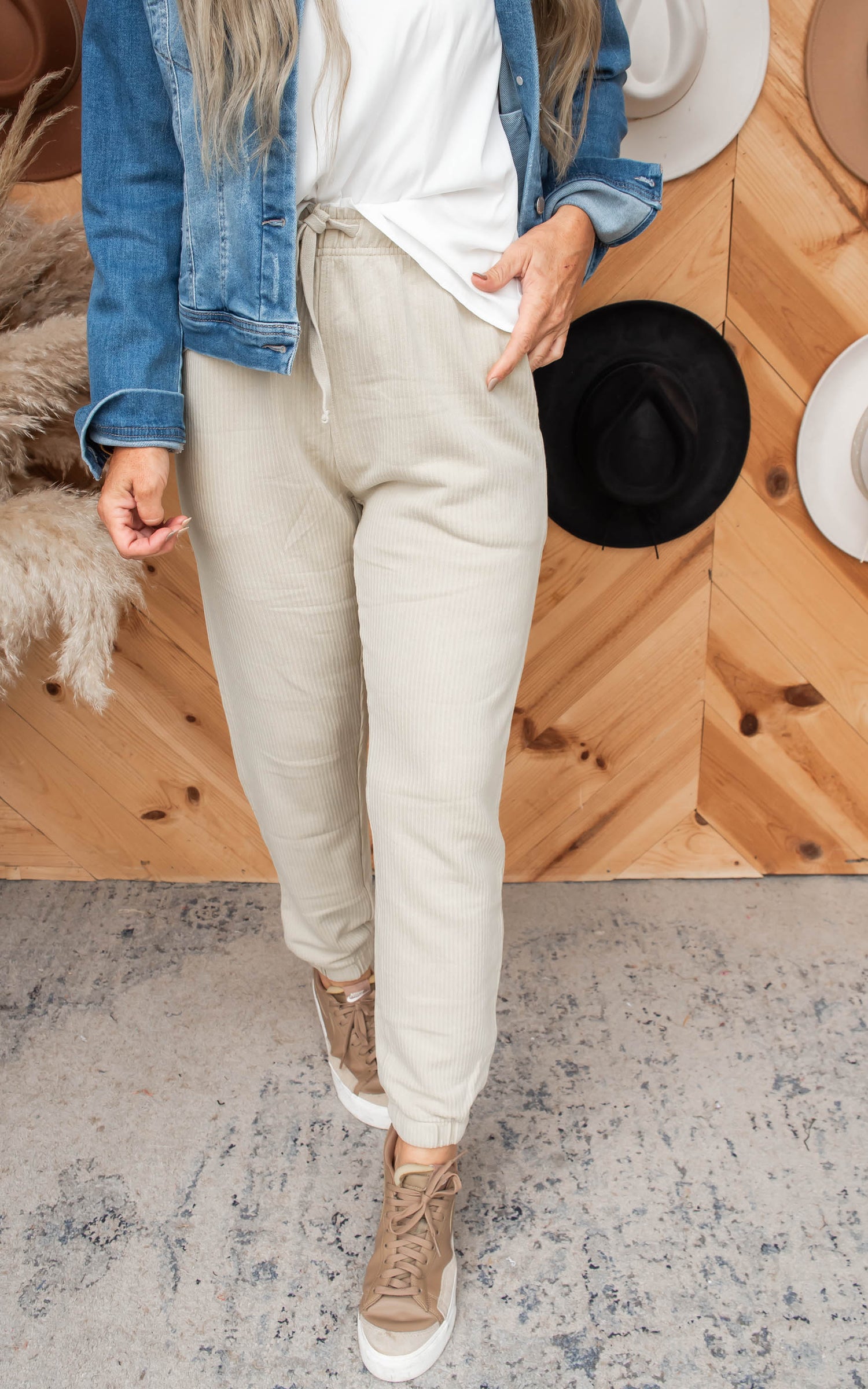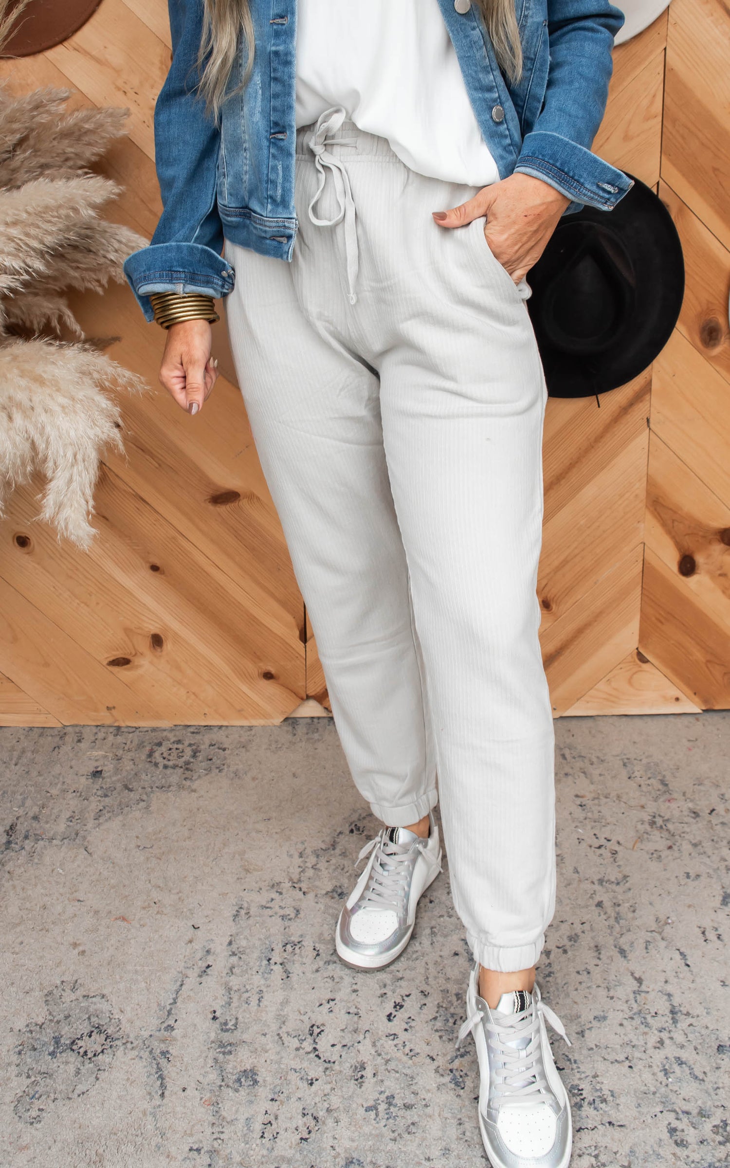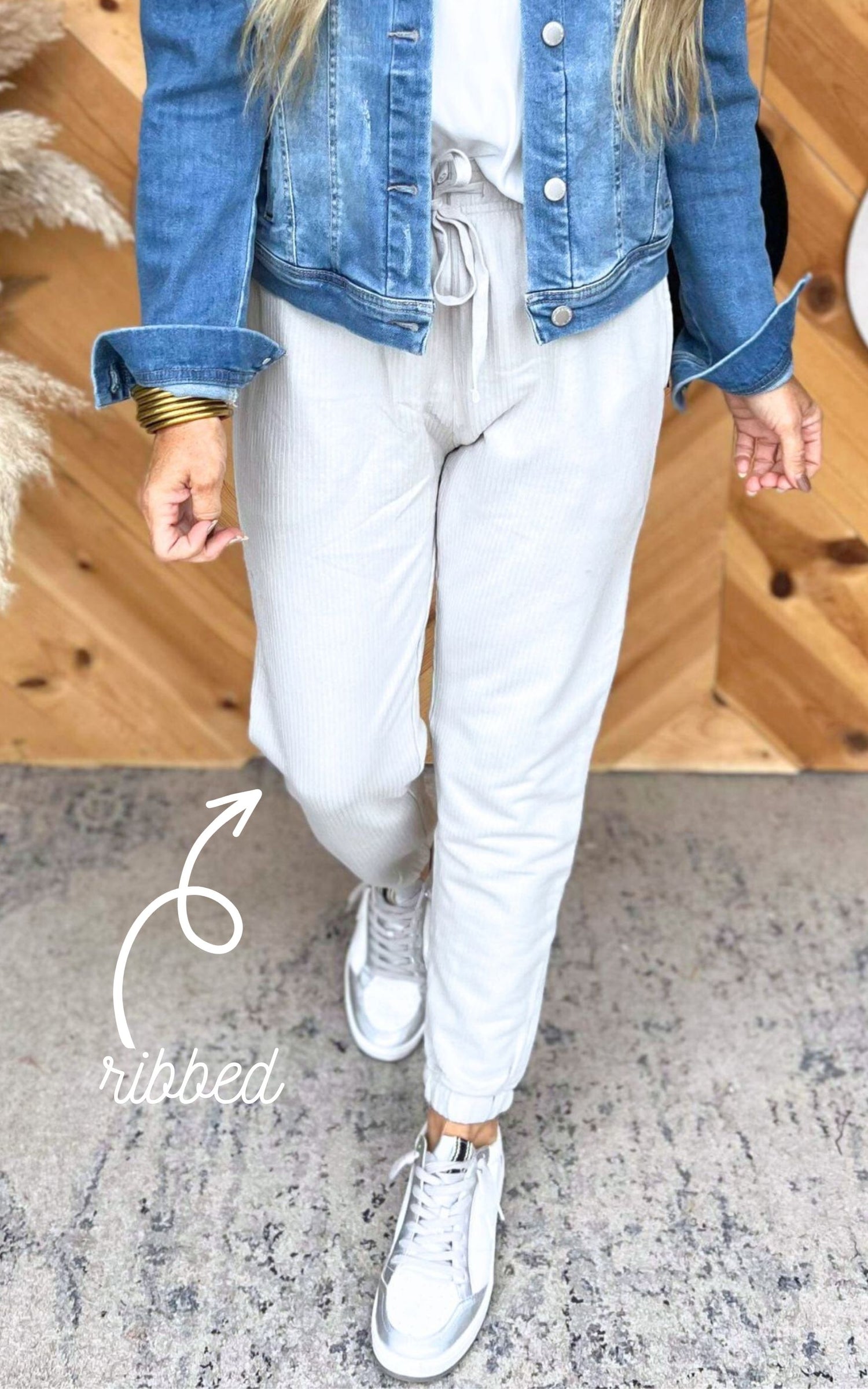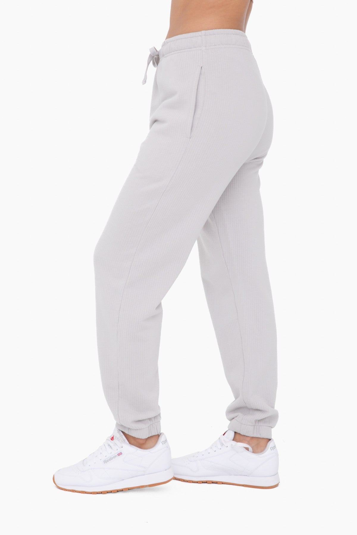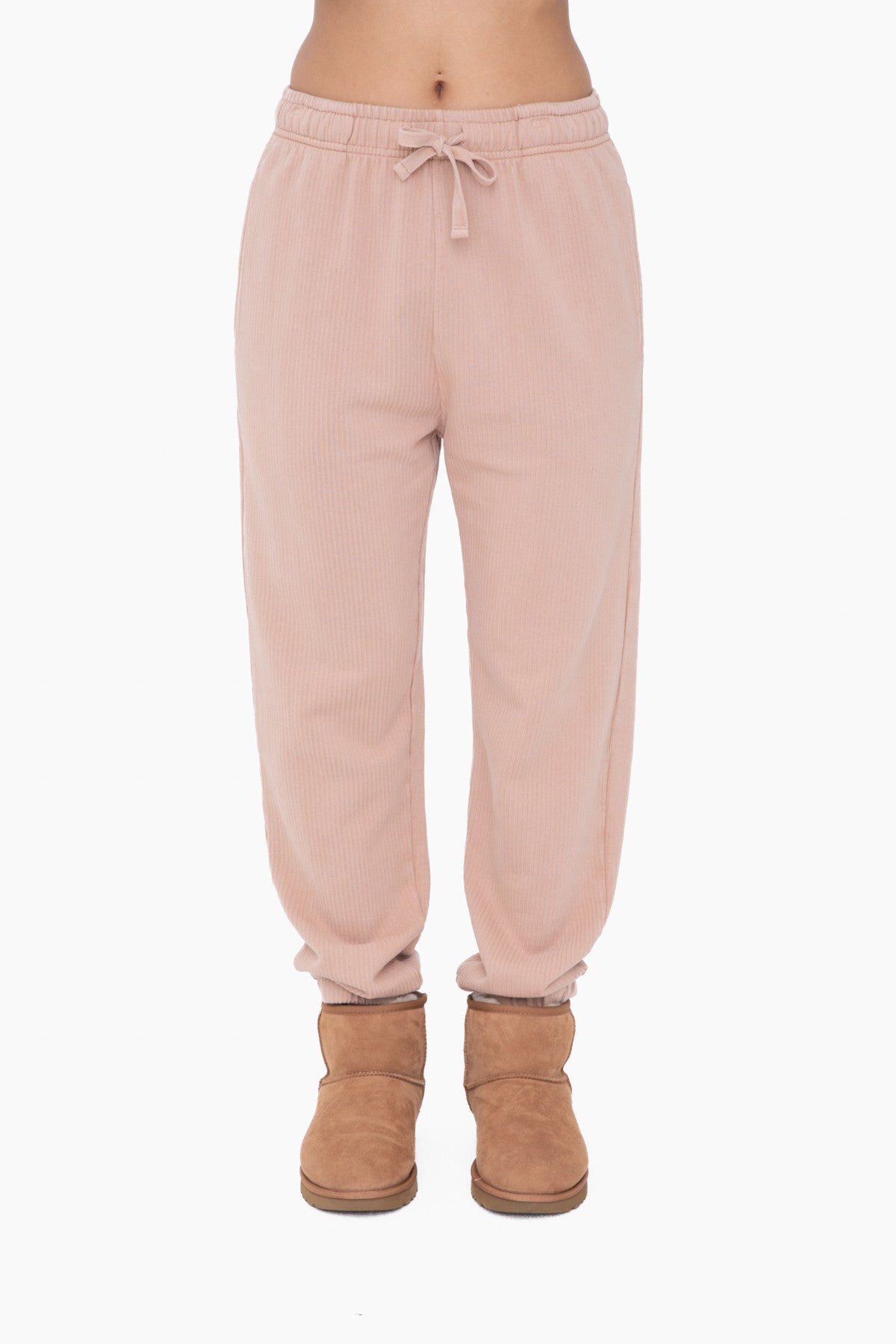 With its relaxed, billowy silhouette, these mineral-washed joggers are perfect for lounging. They feature an all-over ribbed texture, a drawstring closure, side pockets, and cuffed ankles.