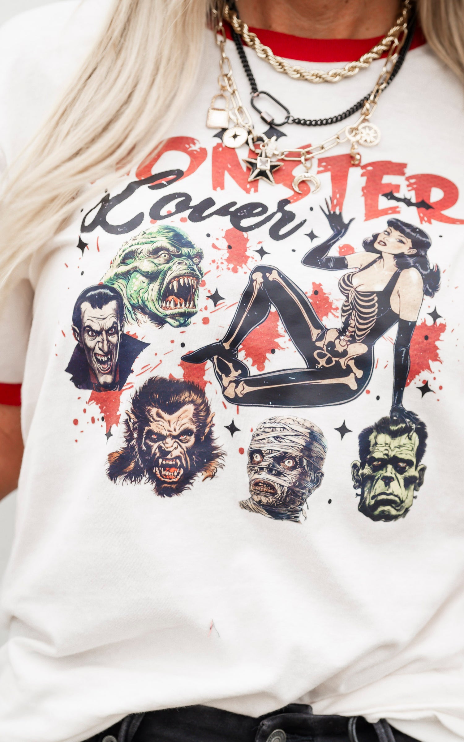 Unleash your love for monsters with our Monster Lover Ringer Graphic T-shirt! This unique tee is perfect for showing off your quirky style and love for all things spooky. With a playful design and comfortable fit, this shirt is sure to become a favorite in your wardrobe.