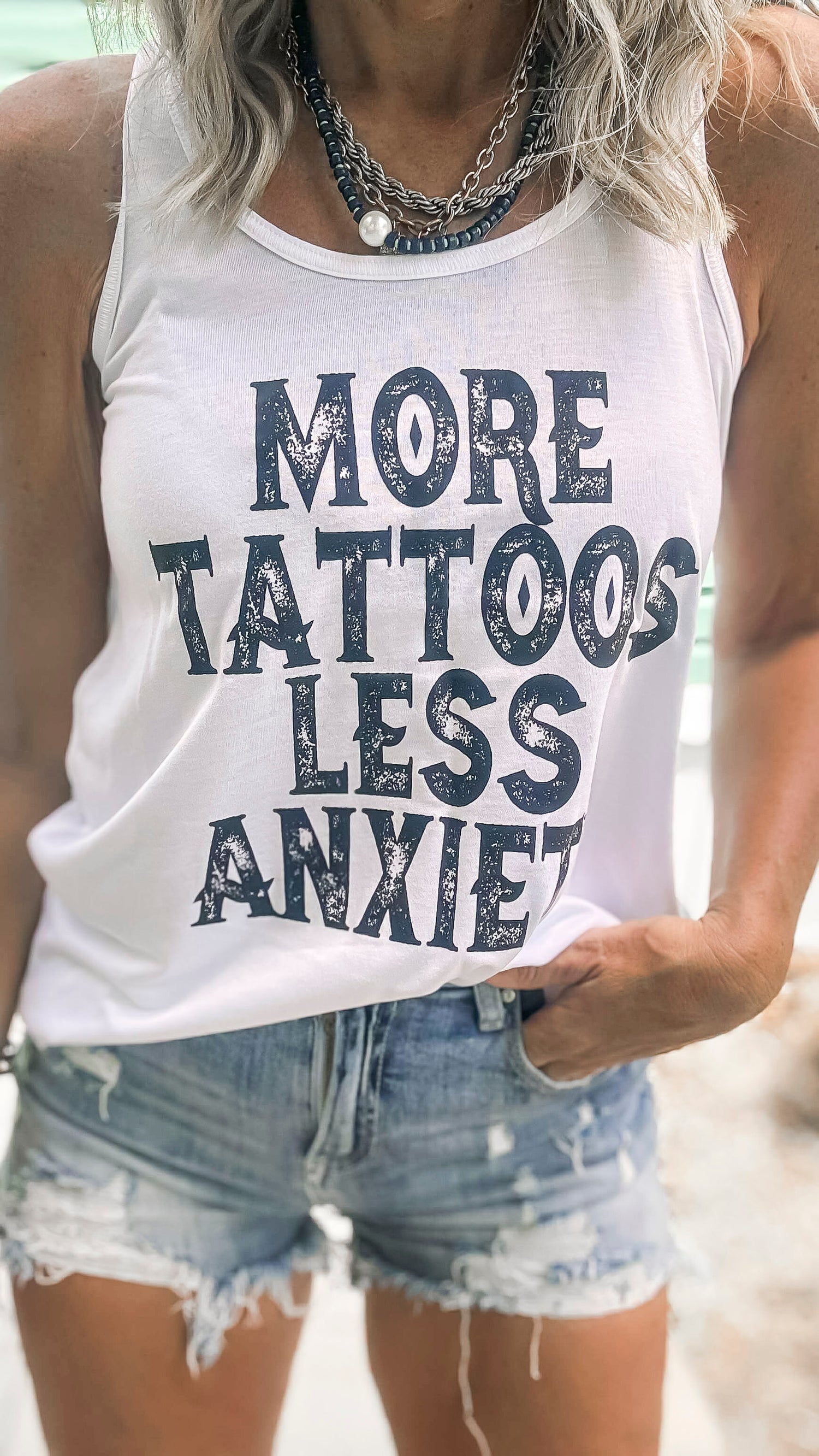 More Tattoos Less Anxiety Graphic Racerback Tank Top