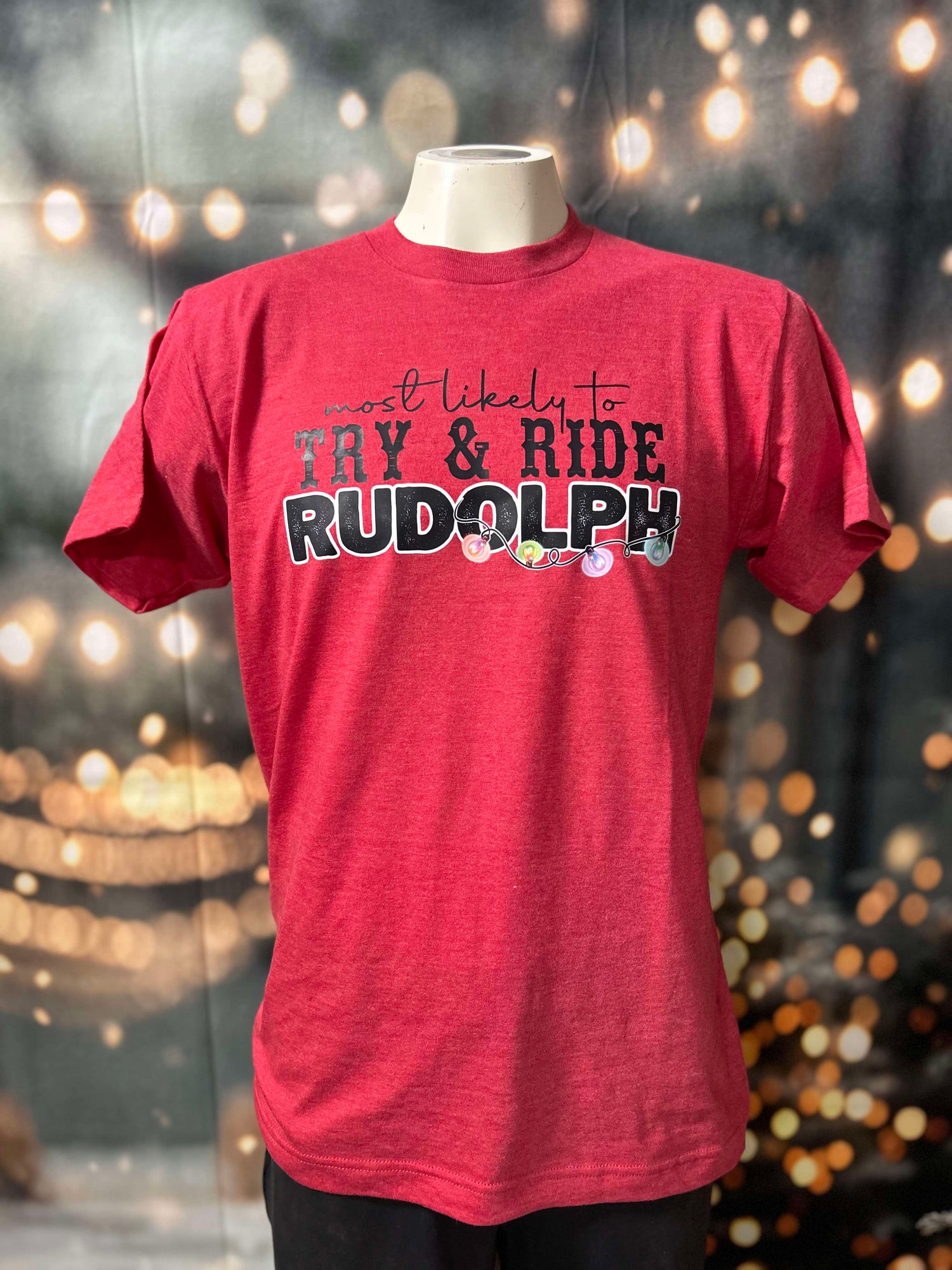 Get into the holiday spirit with our Most Likely to Try & Ride Rudolph T-shirt! Featuring a festive graphic and comfortable fit, this shirt is perfect for all your holiday gatherings. It's sure to inspire joy and laughter, and make you the life of the party. Don't miss out, get yours now!