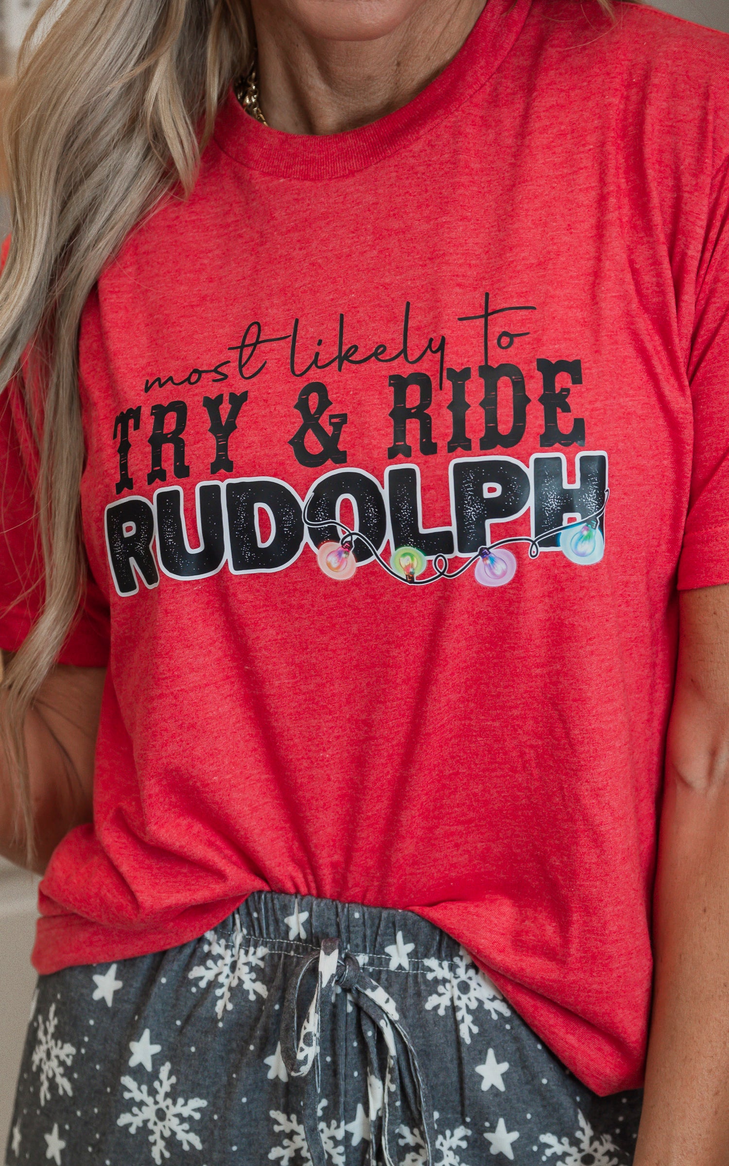 Most Likely to Try & Ride Rudolph Holiday Graphic T-shirt