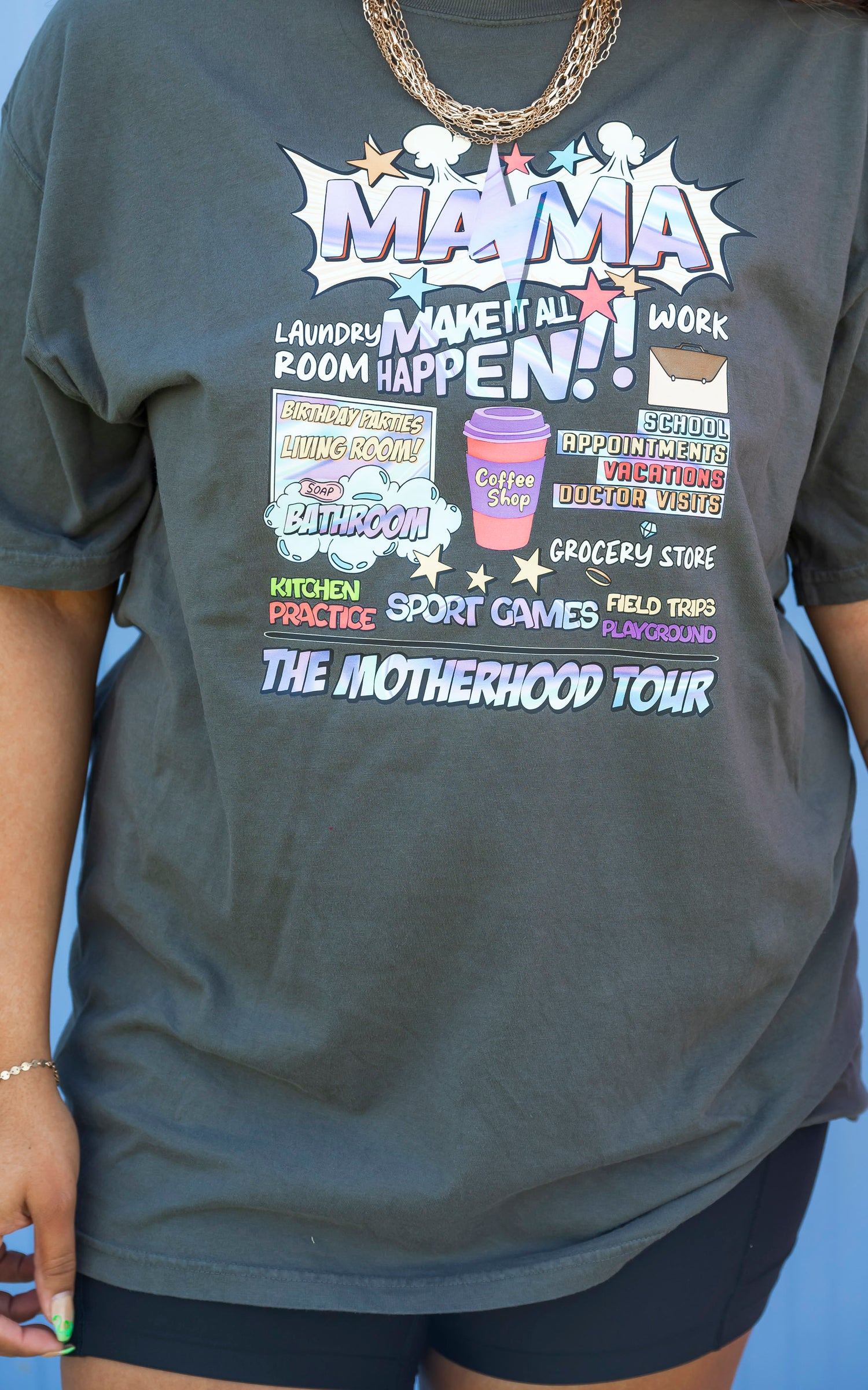 Get ready to rock the Mom life with our Motherhood Tour Garment Dyed Graphic T-shirt. This stylish and comfortable tee is perfect for any busy mom who needs to run errands, attend sports games, and everything in between. With its unique garment dyed design, you'll stand out from the crowd on your #motherhoodtour.