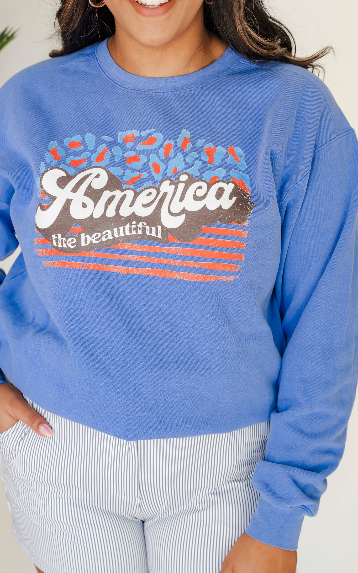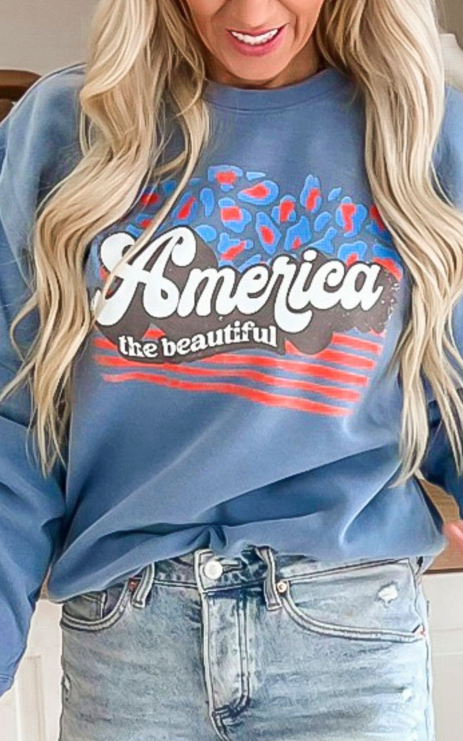 Navy America the Beautiful Graphic Crewneck Sweatshirt - DEAL