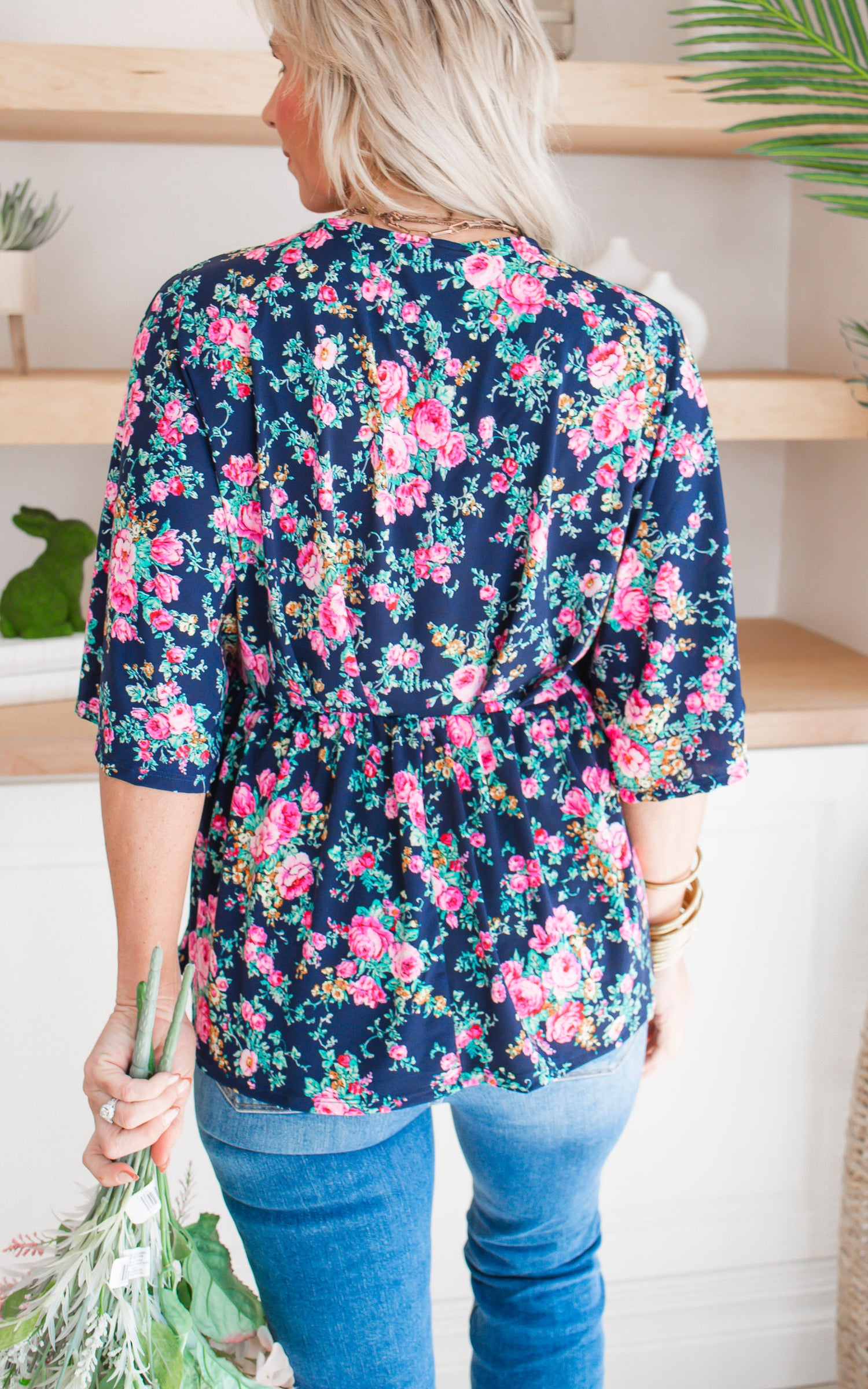 Navy Floral Dolman Sleeve Blouse Top - Final Sale