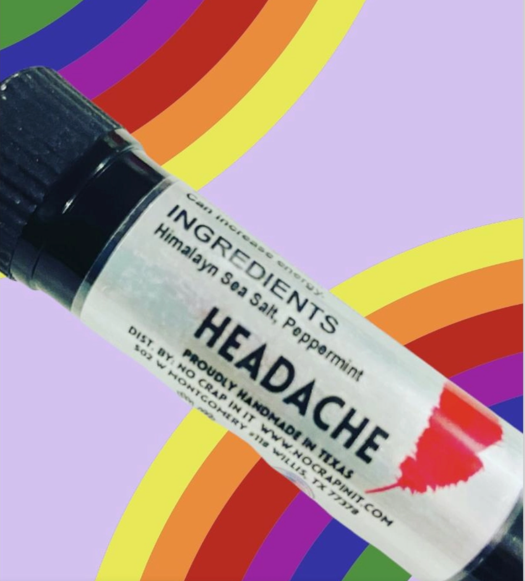 Headache - helps with asthma, congestion, mental clarity, headaches, and energy. Ingredients: Himalayan sea salt, peppermint how to use: place inhaler to each nostril and inhale deeply. Repeat as necessary.