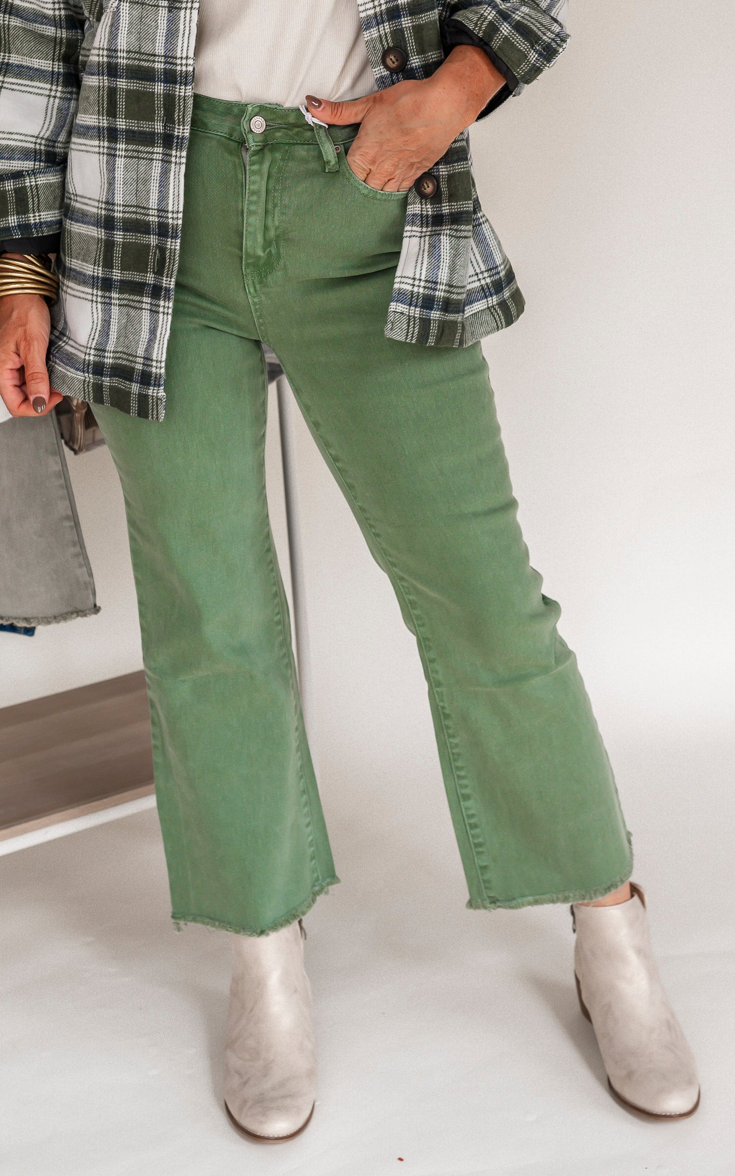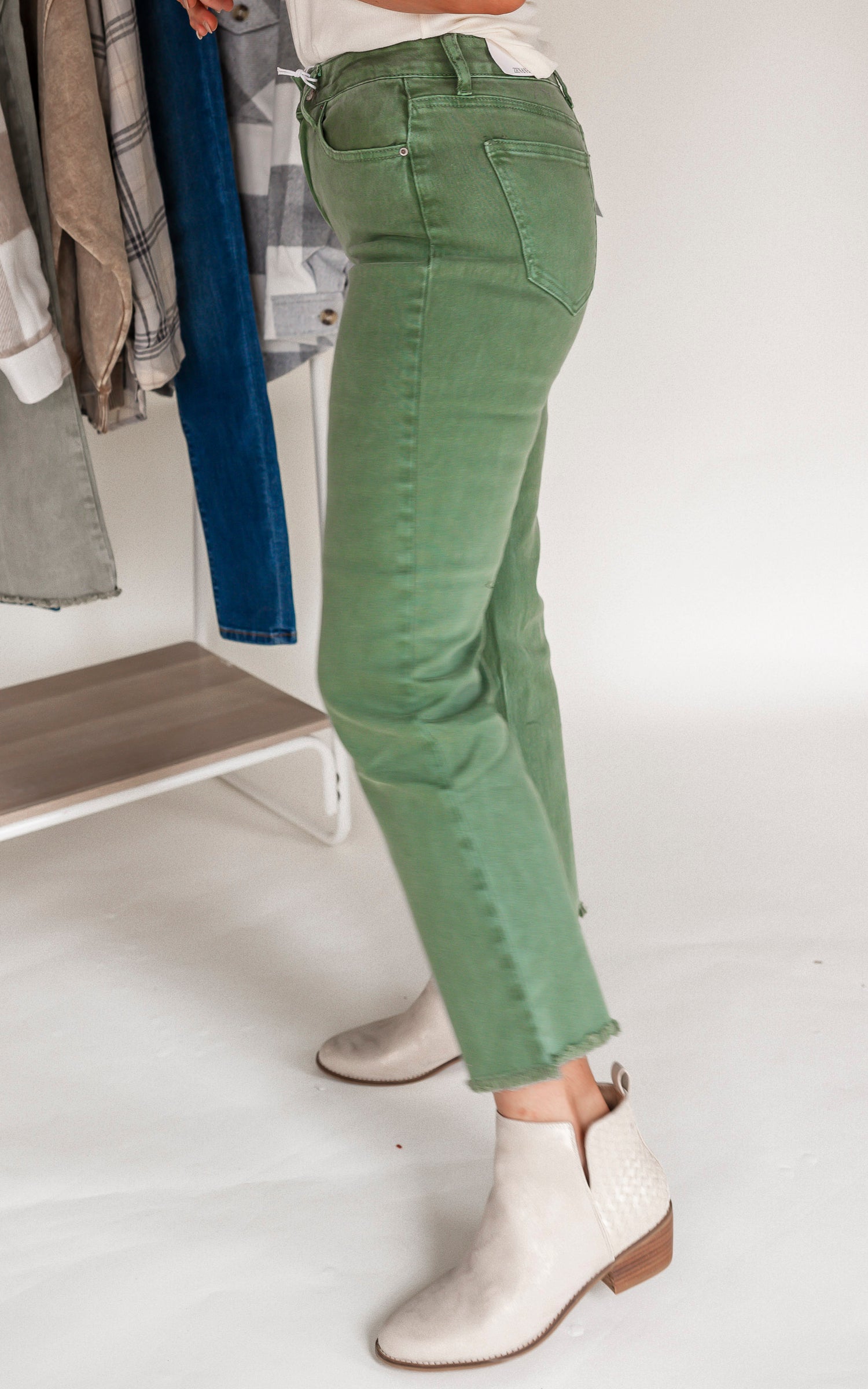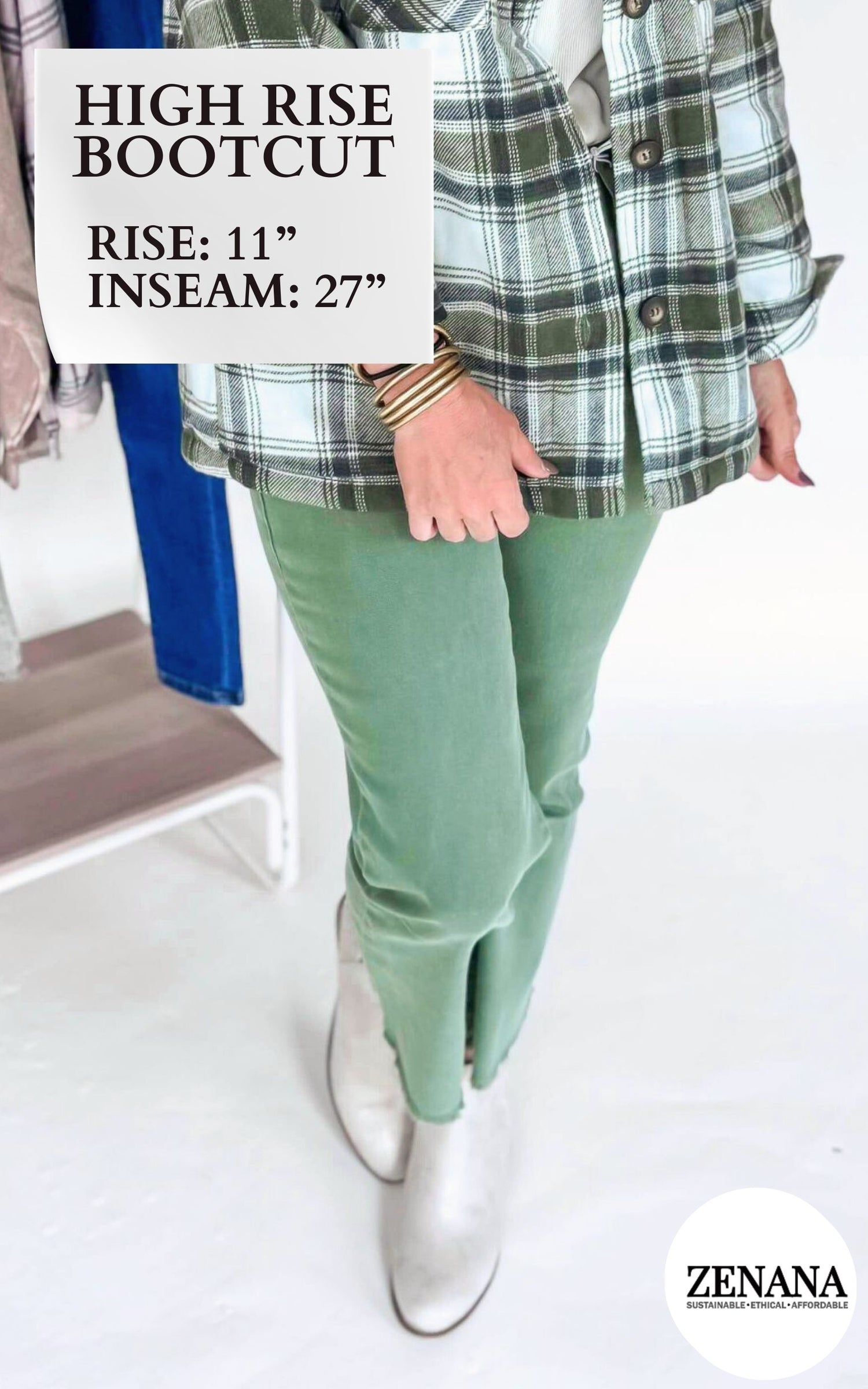 Olive Acid Wash High Waisted Bootcut Denim Jeans | Zenana - Final Sale