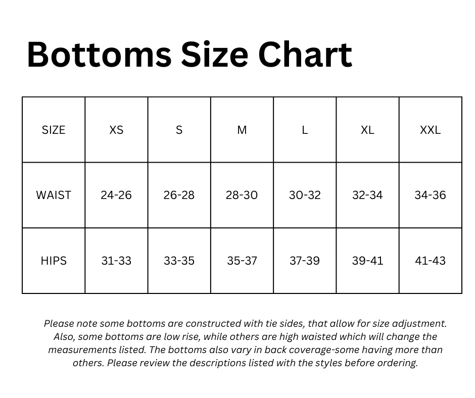 Accentuate your curves in all the right places with our Mia Bottom. This ultra flattering cut is sure to become your go-to bottom. The swooping detail along the waist will have you feeling like the hottest babe on the beach.