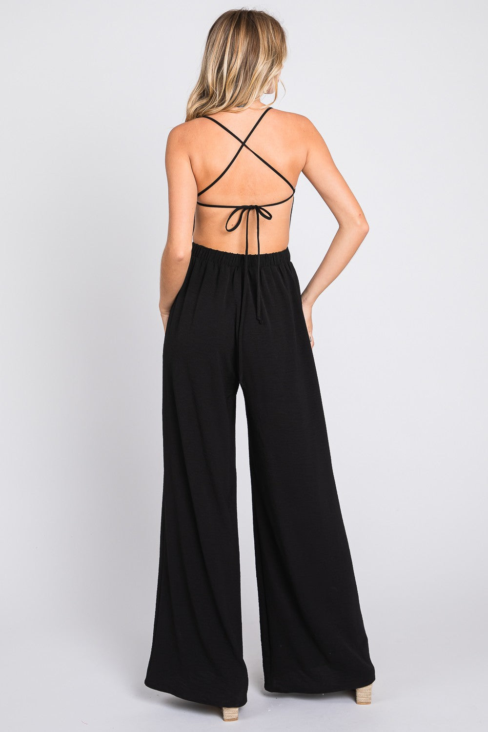 Get the best of both worlds with this Open back Jumpsuit. This versatile piece offers comfort and style with its open back design. Perfect for any occasion, you'll stand out in a unique and playful way. (No double meanings here, just pure fashion and fun!)